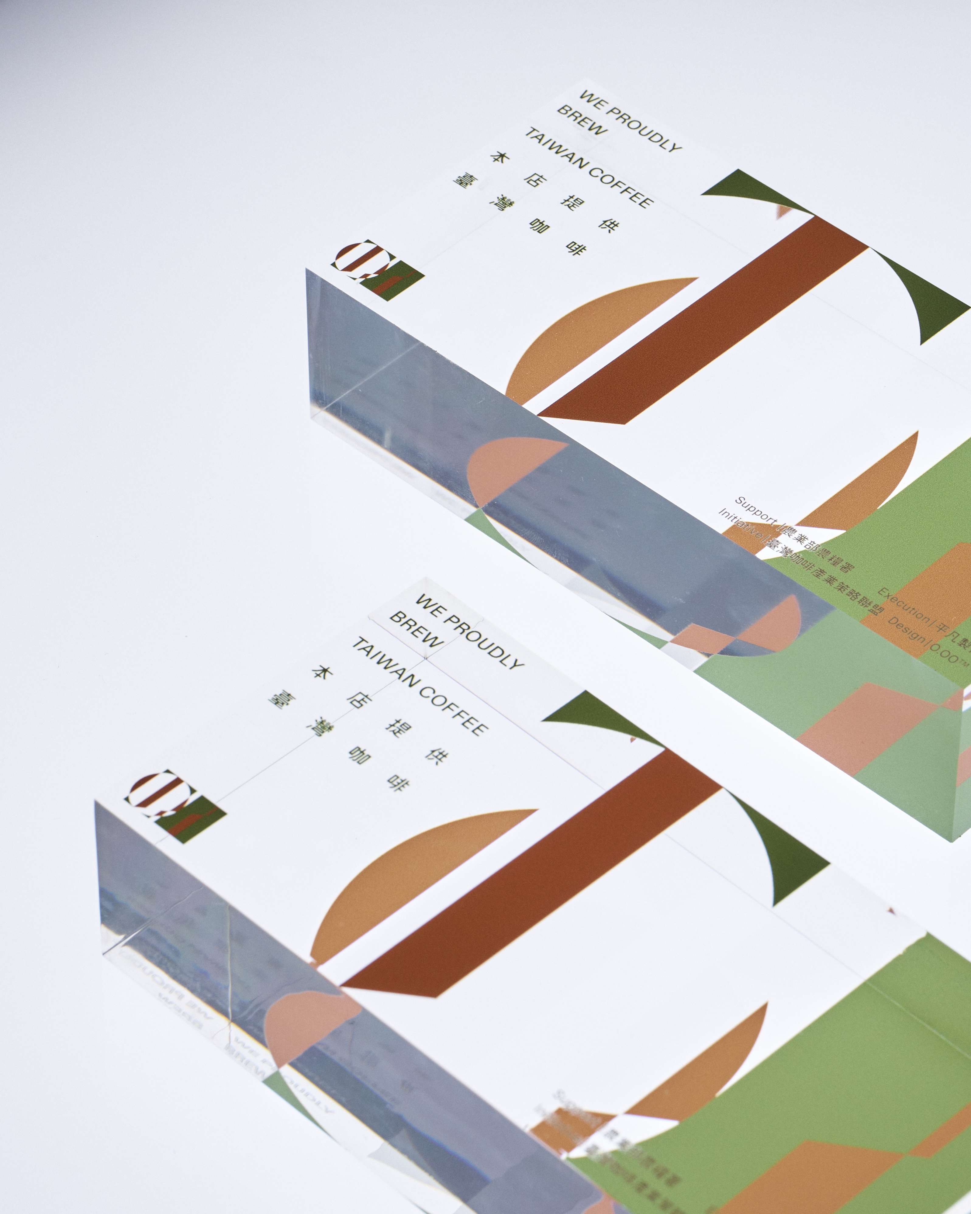 此外,設計團隊 O.OO 也為聯盟打造「本店提供臺灣咖啡」標章。標誌以圓形象徵咖啡豆,斜線代表山坡等高線,交會出「T」字造型,象徵「Taiwan Coffee」。未來將成為辨識臺灣咖啡據點的重要識別,讓消費者能輕鬆找到屬於島嶼的風味。