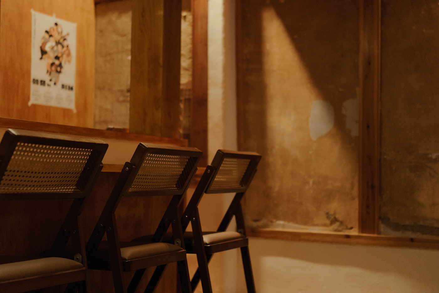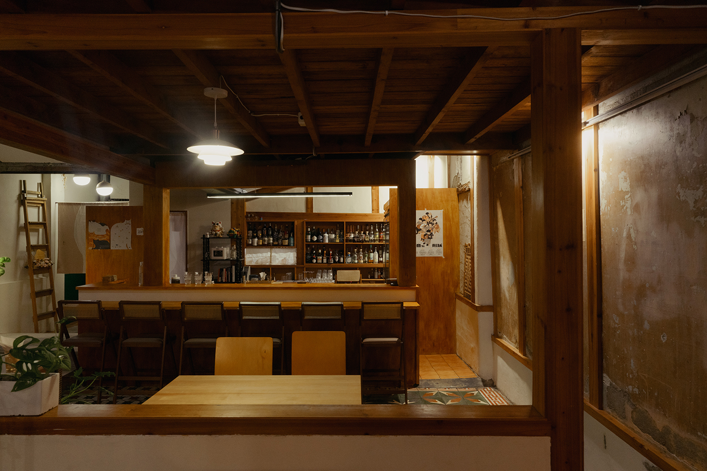 Bar kilogram 所在的老木屋已有超過 60 年的歷史,過去多是餐飲空間,酒吧前身即是深受在地喜愛的早午餐店「飛魚・魚雁商號」。KG 說他第一次走進來時,那種「知道它能變成什麼樣子」的直覺非常明確,不需要華麗的設計、也不必大刀闊斧地拆修,只要把空間恢復成最原本的樣子、讓基底乾淨簡單,再置入合適的家具與燈光,就會自然呈現他心中理想的畫面。