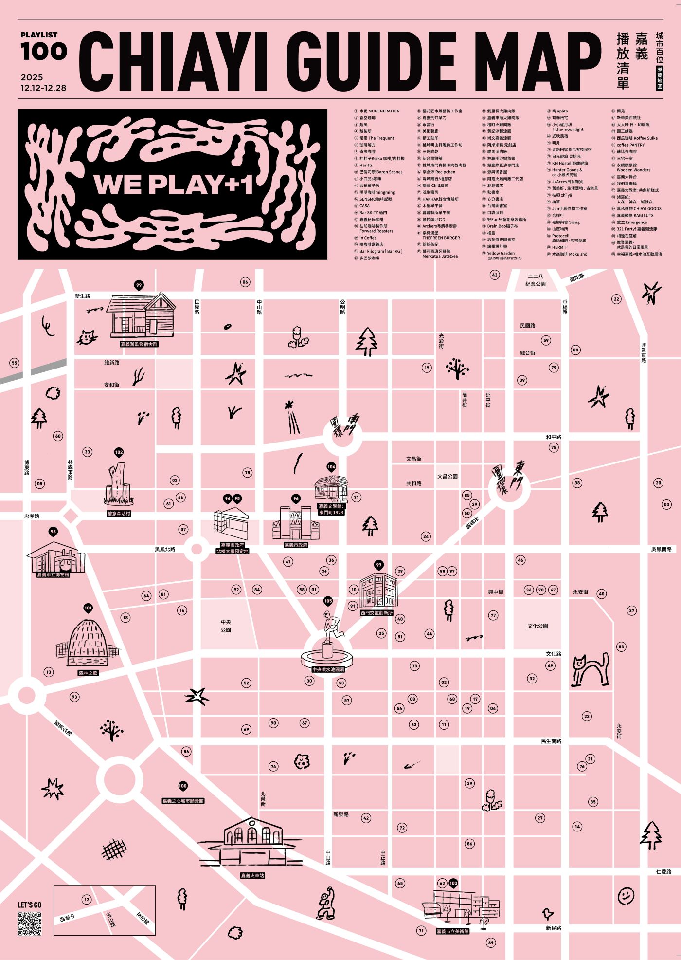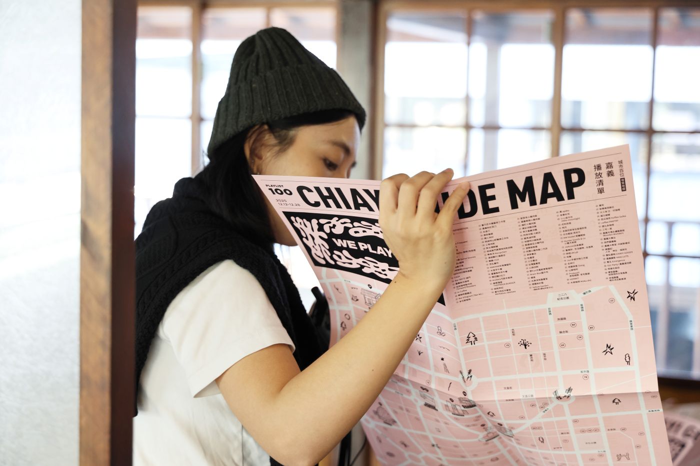 城市百位──嘉義播放清單。活動導覽地圖共收錄100個地標、店家與活動場館,由地圖內地點、店家、場館代表,選出一首「心中代表嘉義的歌」,繪製人像和他們選歌的原因。(photo credit:嘉義市政府文化局)