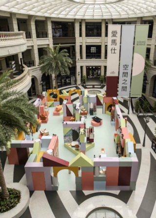 「空間之間」展覽於上週末在精品百貨 BELLAVITA 寶麗廣場一樓中庭開幕,巴黎團隊特別打造的巨型幾何立體色塊堆砌出展覽的空間結構,大小各異的結構體混搭彷彿大人的積木遊戲,展現愛馬仕家居系列的想像力、色彩創意與當代風格;在色彩柔和的幾何空間中,每件家具都得以展現精確的線條,傳遞出和諧的平衡美學。