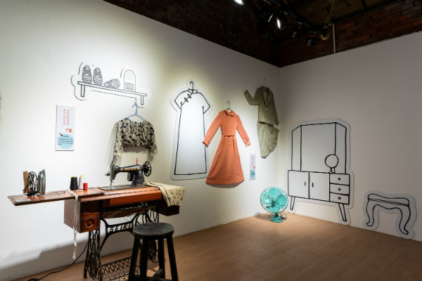 實體老家具與插畫線稿交互拼出空間的樣貌,增添觀展趣味。(Photo Credit:宜東文化)