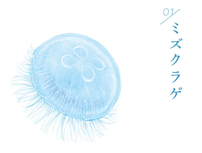 水母的日文發音為「クラゲ」(ku-ra-ge),漢字則書寫成「海月」,光看字面便能想象水母在水中緩慢地漂浮游移的輕舞姿態,以及自黑暗中透露微光,足以療癒人心的迷離。