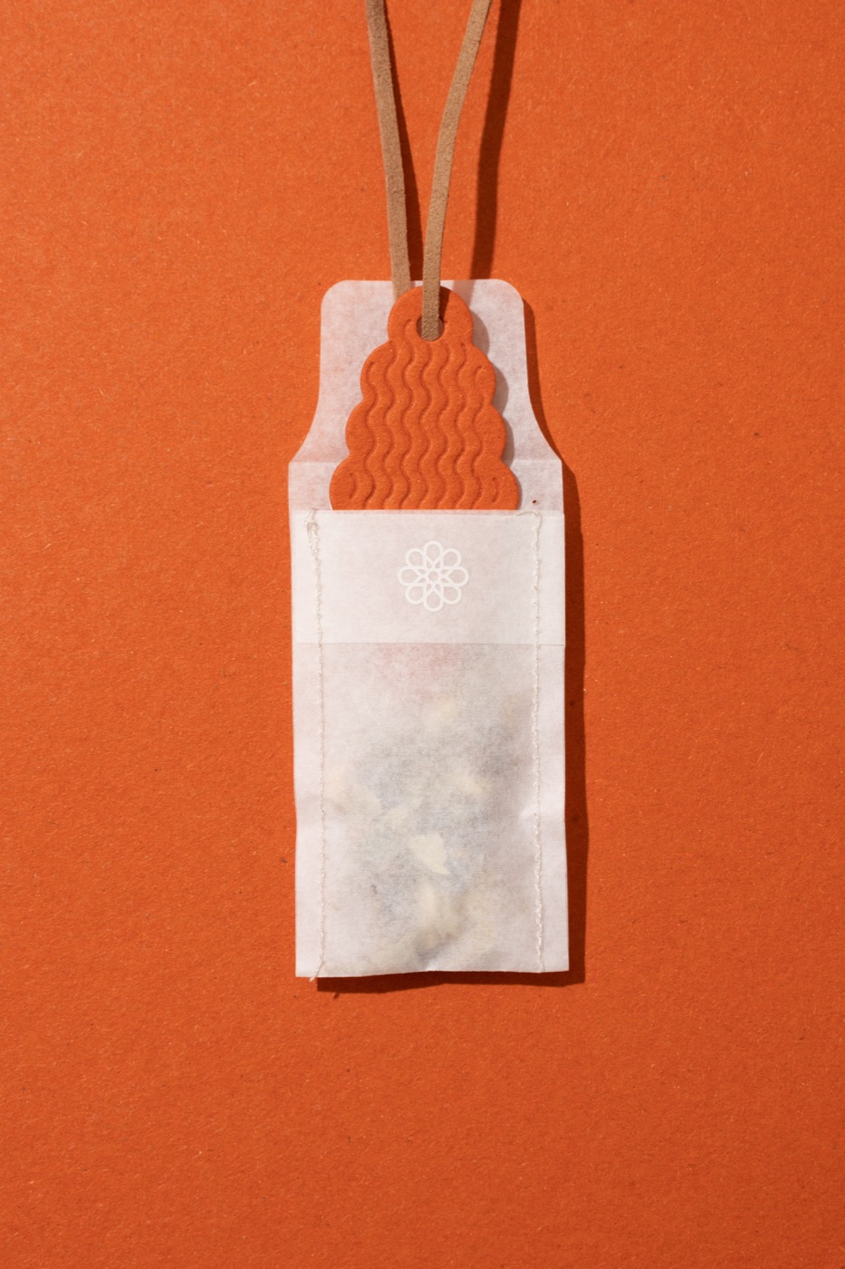 傳說中神農大帝具有特殊的「水晶肚」,能清楚地觀察藥草在身體的作用與變化,因此香囊外袋特別採用半透明的特殊紙質設計,呼應同時將神農大帝上身草葉披肩簡化設計為象徵性家徽。香囊內裝香卡及漢藥材,共有安神、安身、安心三種款式,特別選用纖維較易吸附香氛的材質,造型分別對應果實種子系、根莖系及草花系的漢藥材。而若香味散去,也可重複噴上香氛使用,強調設計的環保永續性。