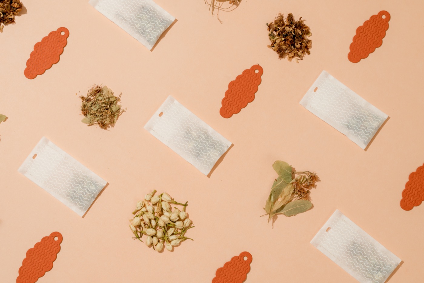 以全草類、花類設計的「安心」款香囊,內含菩提子、茉莉、山茶花等對應漢方中藥。(Photo Credit:台北迪化商圈發展促進會)