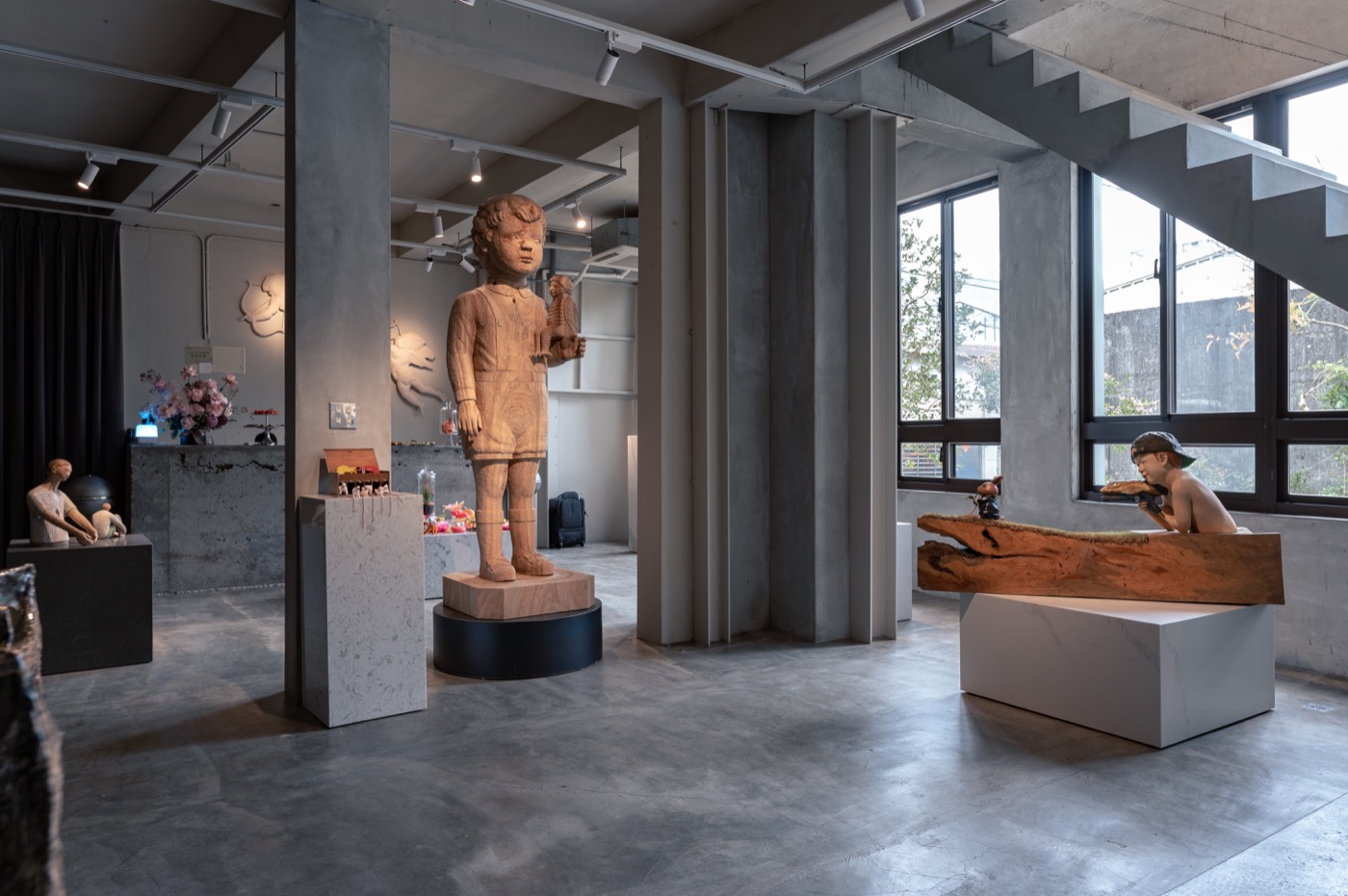 亮點 2:藝廊也是微型博物館!竹利絵子大型男孩⽊雕、12 座訂製⼤理⽯展台,象徵藝術初衷與延續