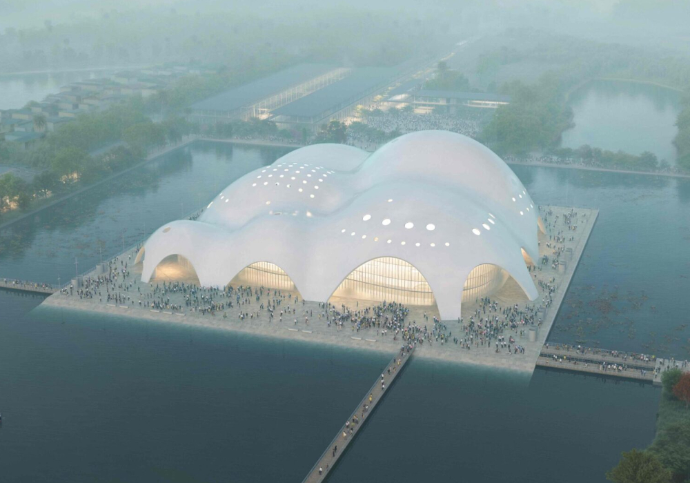穿越過道,一片花園開展於眼前,抬頭所望以燈光呈現美麗星空,再現1932年的展場氛圍。2022年的全新珠寶作品即展示於此。(Photo Credit:CHANEL)