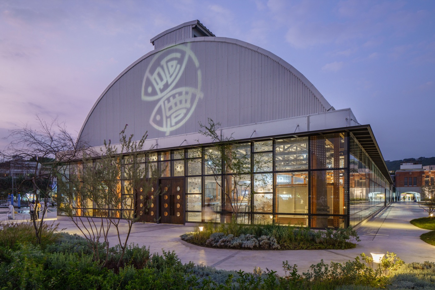 高雄市第一座現代化的魚市場「鼓山魚市場」在漁業重心轉移後,建築閒置多年,直到去年開始由「趙建銘建築師事務所」著手進行建築整修與再設計,保留建築特色的弧形屋架,以「透明盒子」概念將 270 度鼓山漁港海景映入室內,周邊地景與植栽則由「太研設計」景觀設計師吳書原操刀,為舊魚市場建築帶來新面貌!