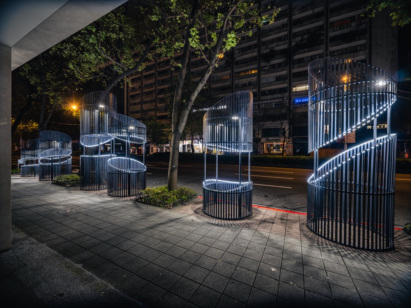 辛綺與艸非火工作室以螢光材質於行道樹上編織出《北回光線》,作品以藝術家南北交織移動的生命故事為靈感,打造一片所有人都能進入的生命場域,其中以編織管材創作的「光蟲」演化成了一片有光、有影的生態圈,讓人走進一種異次元的場景之中,台北給人的印象不只是繁華的都市,更是與大自然共融宜居城市。