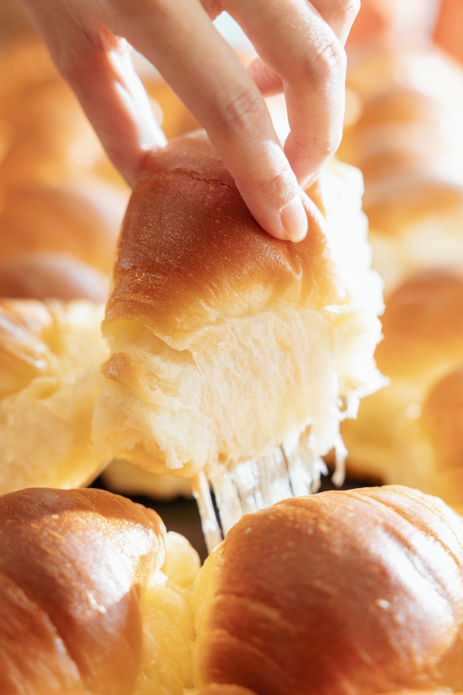 其中,啟發「蜷尾家パン」成立的是經典麵包「手撕胖」,師傅遵循傳統手工製程,抹上獨門特製的有鹽奶油,在舌尖噴發誘人奶油香氣,完美復刻童年記憶打造鬆軟綿密的台式麵包口感。