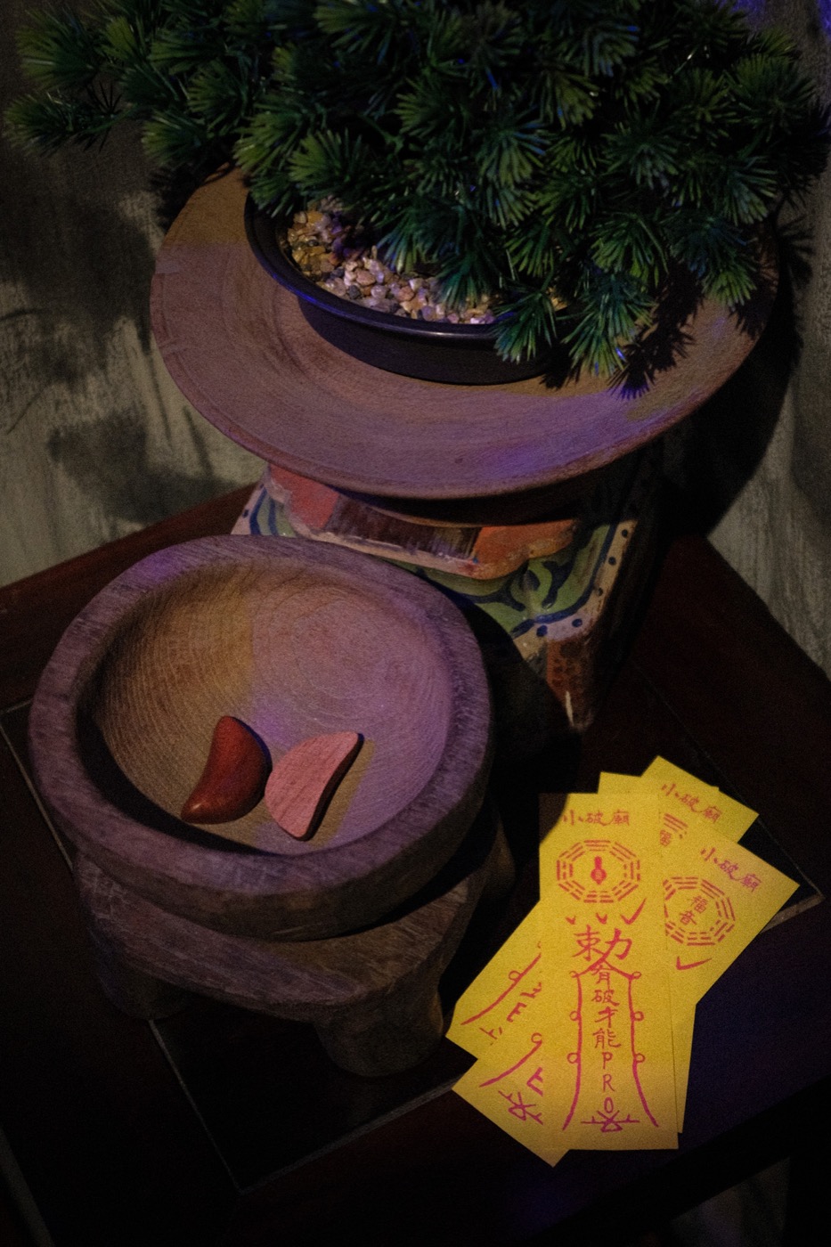 此外,小破廟裡也有「問事處」請來期間限定神秘人幫大家指點迷津,一同破除生活裡的各種疑難雜症;以及「告解室」讓你與吧檯人員喝酒、聊心事,分享一件「今日最快樂的事」,便有機會擲筊獲得免費「聖杯 Shot」。