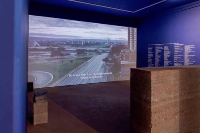 巴西館設置了兩間展廳。第一間「為經典去殖民化」(De-colonizing the Canon),對於1950年代後期首都巴西利亞建設的發展進行批判並重新評估,通過建築、景觀和被忽視的文化遺產,展示巴西更複雜且多元的領土、建築、國家的樣態。展覽中以居住著當地原住民族的Quilombola社區為核心主角,從去殖民化的切角展開討論,而館場中也展出受威尼斯建築雙年展委託特別製作、描繪著被強拆的Quilombola社區的地圖。