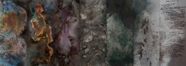 蔡國強1991年於東京P3藝術與環境研究院的個展《原初火球——為計畫作的計畫》展出了將7幅火藥畫裝裱於木製屏風上的大型創作《原初火球》。(Photo Credit:Cai Studio)