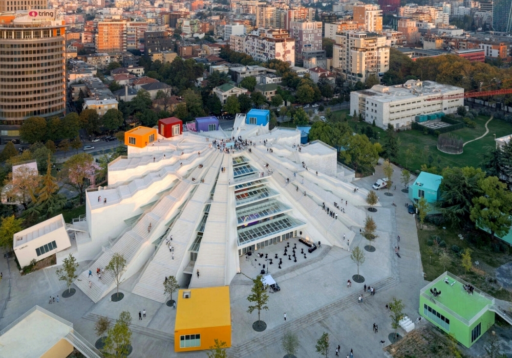 阿爾巴尼亞新地標「地拉那金字塔」重生改造:MVRDV 融入彩色方盒、純白階梯,獻給人民的明亮紀念碑