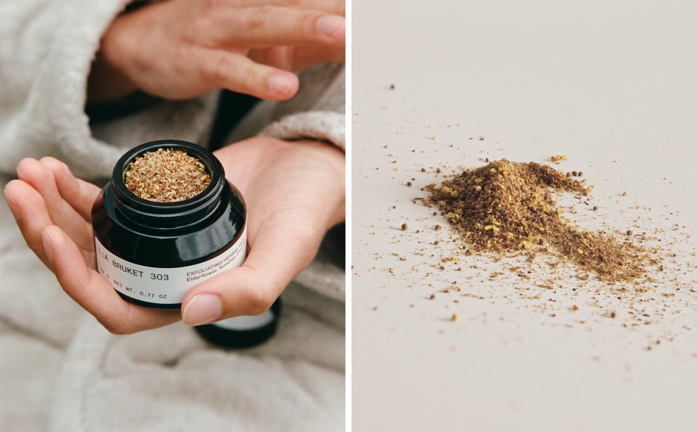 臉部柔滑去角質的顆粒感來自乾燥接骨木花、玫瑰果、洋甘菊等配方。(Photo Credit:10/10 HOPE)
