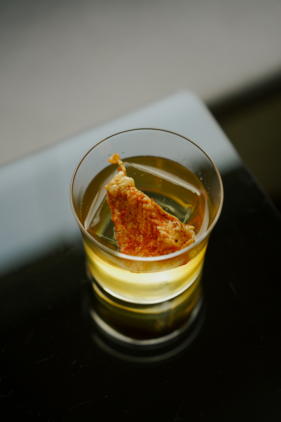 至於「JESUS, MARY AND JOSEPH!」改編經典調酒 Bloody Mary,以蘭姆酒為底,在熬製完畢的鳳梨剝皮辣椒雞湯內加入蕃茄,然後運用墨西哥著名莫雷醬(Mole)概念,結合剝皮辣椒與巧克力風味,再以澄清萊姆汁與 Amontillado 雪莉酒增加層次感,最後以烘烤過的雞皮點綴其上,甘甜與辛辣交織,隨之而來的鮮味成就了這杯獨特的味蕾炸彈。其他還有「EMOLIENTE」、「SEEDS & FIZZ」、「FUTURE NOSTALGIA」等有趣的選擇。