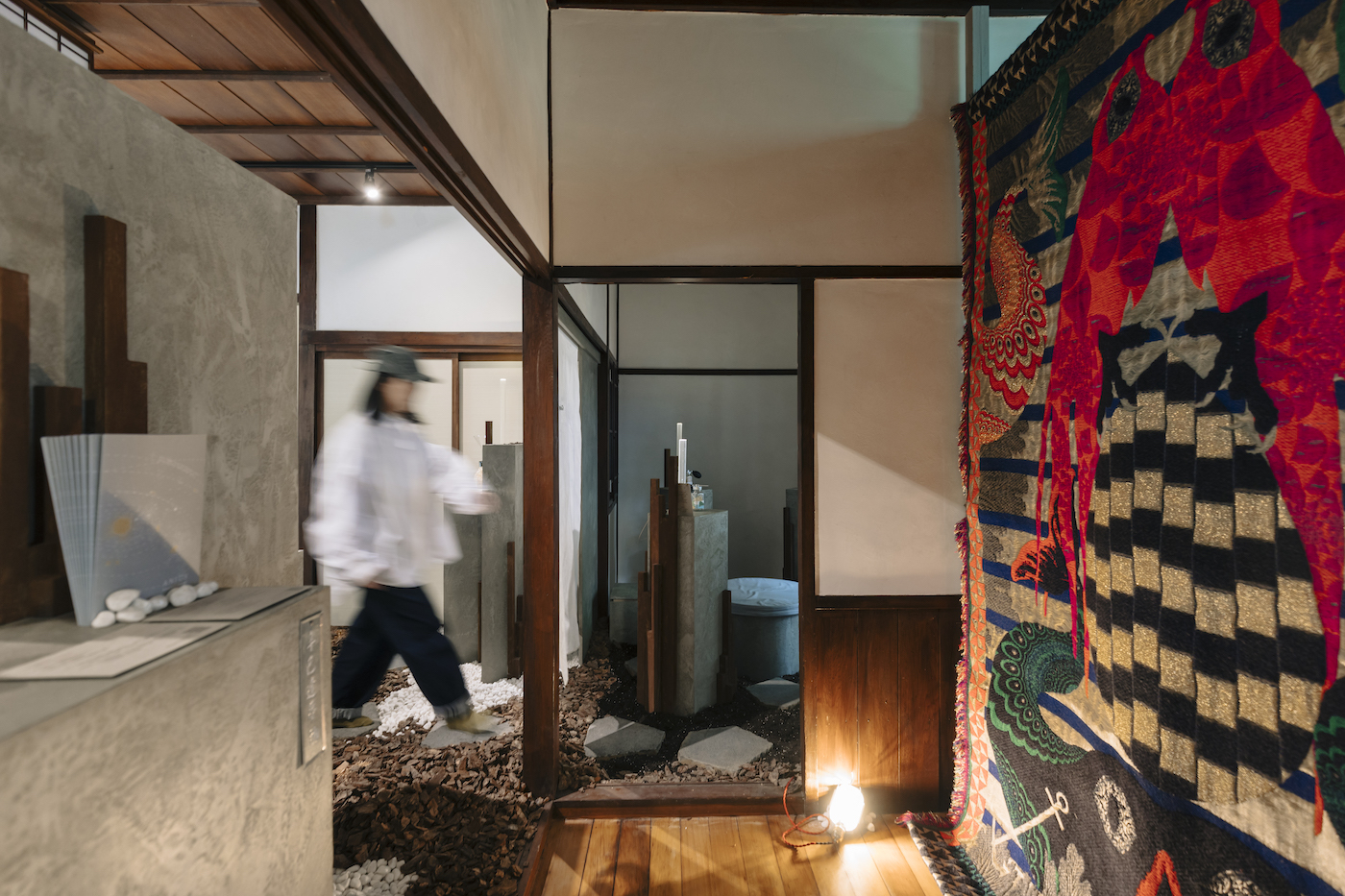 當住宅空間隨時間更迭變換用途為展場空間,習以為常的前庭後院概念也隨之反轉,「格式設計展策」讓前庭成為接壤外界的識別,但真正進入「0km山物所」的方式,則是繞道至日式建築最具特色且串連起三棟老房子的緣側,一切皆由廊道後院展開。