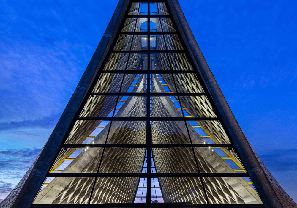 接著,在自家工廠進行 CLT 板材五軸切削製造出 963 個模板元件,並於基地現場與鋼筋一起進行組裝加固,並澆灌混凝土,逐步形成覆蓋 CLT 樑與面板之間的結構,實現了木樑跨度 25 米,混凝土板僅 8 厘米的薄型。這項創新工藝已經註冊專利,為一般殼體結構成本的 60%。其 3D 數據可與結構技師共享,用於結構分析、設計與元件製造等交叉進行檢查,建立一個結構上、施工上都能持續優化的系統和流程。