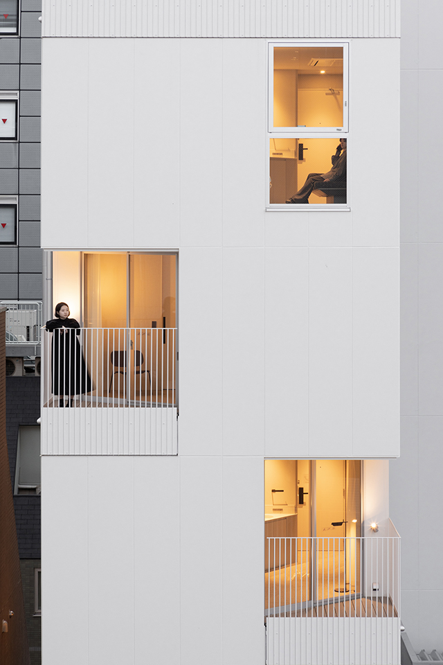 狹窄都市中的設計飯店!東京「Hotel Rakuragu」以錯落陽台、靈活空間與簡約設計形塑日式美學