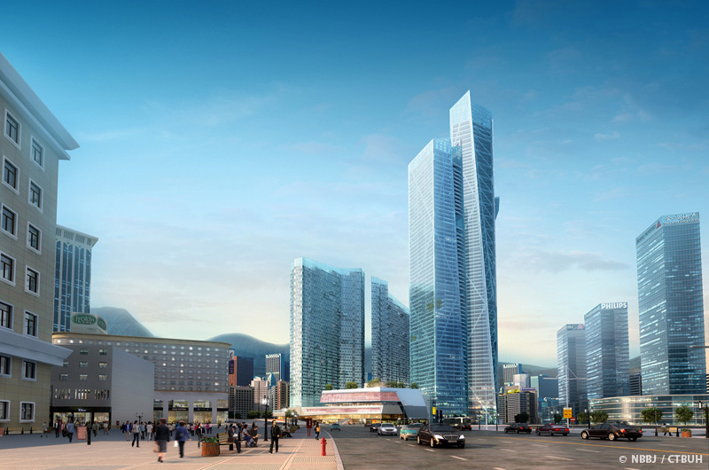 美國第二大、世界第三大建築師事務所 NBBJ 與香港裕景集團合作的「大連中心‧裕景」複合式摩天大樓(Eton Place Dalian Tower 1 ),2007 年於中國大陸大連市開始動工。「大連中心‧裕景」總共由 5 棟高樓連結而成,日前以陸陸續續完工,其中這棟高達 383 公尺(地下 4 層、地面 80 層)的 Tower 1 最令人矚目,因為它不僅將躍居中國大陸東北部第一高樓,同時也會擠進「全球前 20 高」建築之列;除此之外,它結合了 5 星級與 7 星級飯店、酒店式公寓、國際辦公大樓、電影院與 24 小時營業的娛樂中心等等,集商業、飯店、娛樂、住宅於一體,加上北面可遠眺大連港與大連灣,這棟即將成為中國大陸第 46 座竣工的摩天高樓,發展前景不容小覷。
