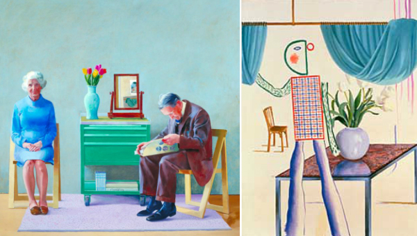 個性直率的霍克尼曾說過自已對「拍馬屁」這件事真的應付不來,甚至是英國女王的繪畫創作邀請也硬生拒絕。但他卻常在作品中描繪自已所愛的人,包括自已的母親好友們以及同志戀人。與母親關係密切的他,常以母親為主角呈現創作。此次展出其一作品代表作《 My Parents 》創作於他父親去世前一年,不僅將父母兩人的身影繪製於畫面,在鏡中也將自已的象徵悄悄地融入,創作出耐人尋味的另類全家福作品。