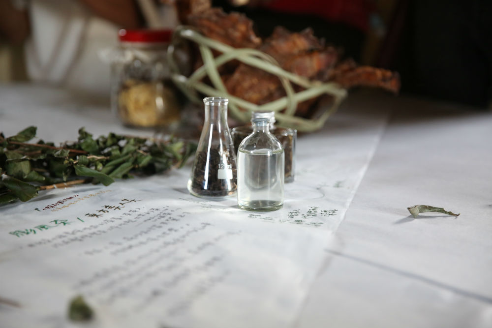 左圖:由蕃薯伯所蓋的南浦竹雨茶蘆。(Photo Credit:「浪漫台三線藝術季」授權提供)右圖:捕息工作室的林宛縈,將各種不同食材蒸餾,發現不同茶行的東方美人茶各有其獨特的氣息。(Photo Credit:「浪漫台三線藝術季」授權提供)