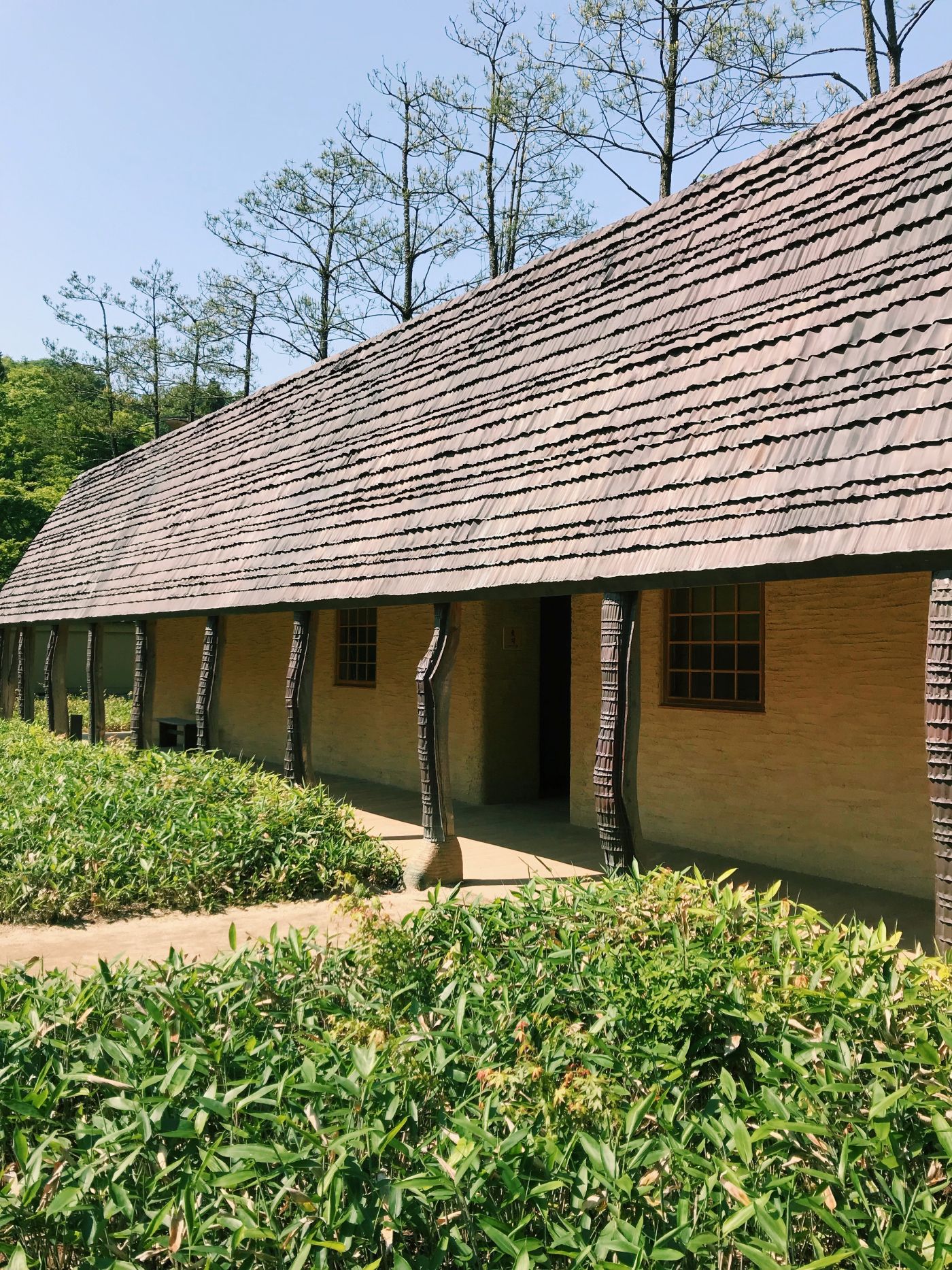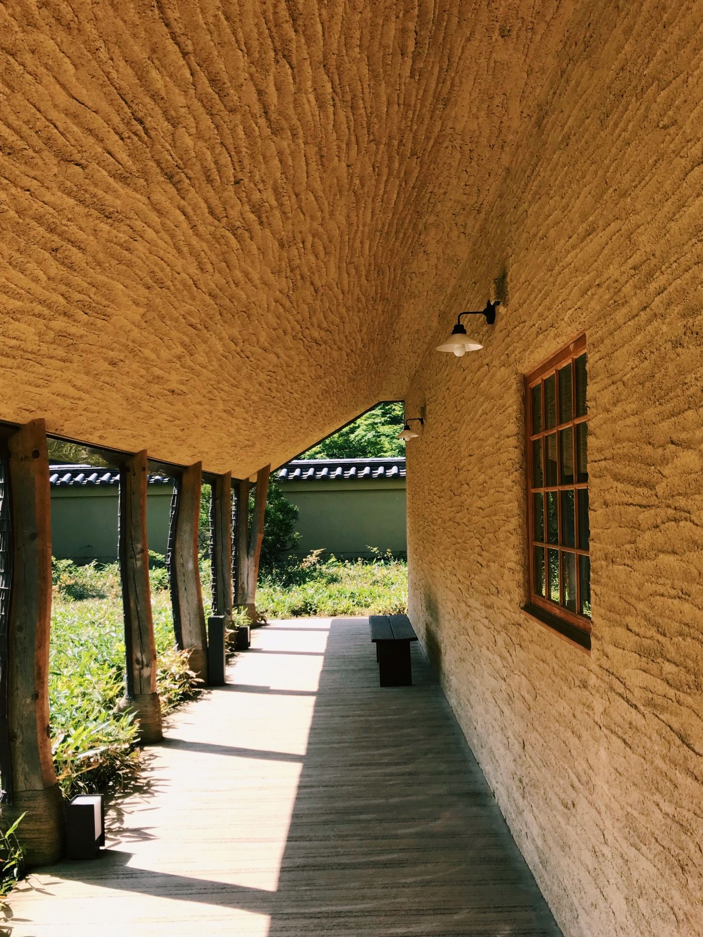 「松堂」的樣子與位於滋賀縣的菓子屋「La Collina近江八幡」有點相似,自然素材、泥土牆與樹幹柱子…藤森照信的建築物一樣地討人喜歡,也一樣療癒了我們長途旅行下疲憊的身體與心靈。