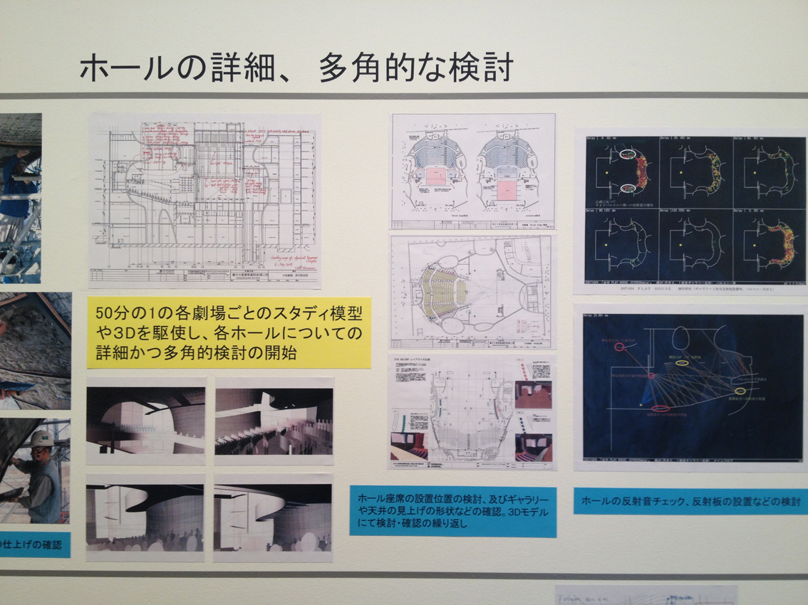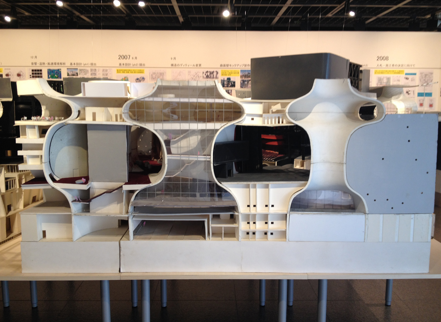 然而,這9年間是苦難的連續。從曲面的連續體當中該如何放進三個劇場與排練室、餐廳等,曲牆該使用什麼樣的結構體使其得以理性地成立,以及該用什麼樣的工法在預算內加以實現等等。在反覆的試行錯誤過程中,終於抵達了只剩下一步之遙的地步。
