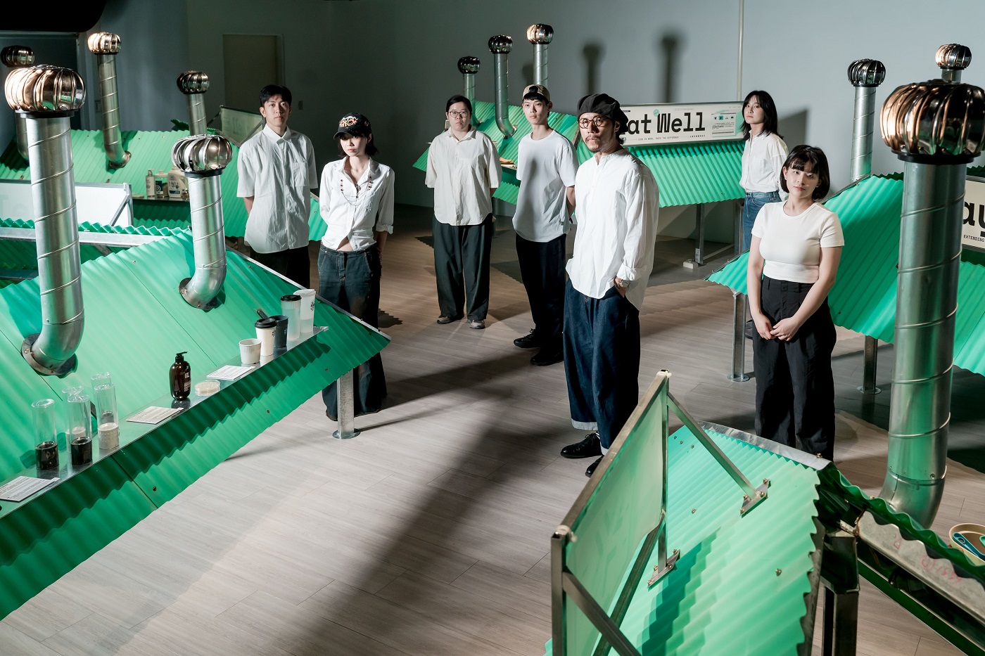 策展人方序中(右三)、展覽統籌陳乃惠(右二)與小島裡策展團隊,以幽默重新解構永續策展模樣。(Photo Credit:MOT TIMES 明日誌、Photography by Kris Kang)