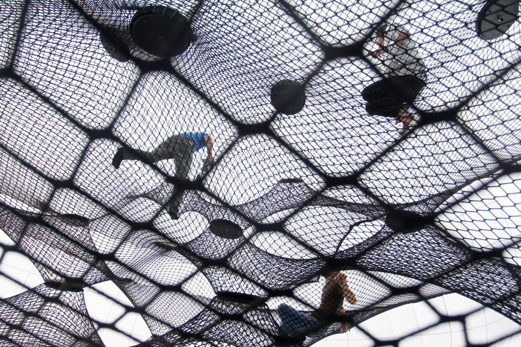 照片中為 Numen / For Use《String》系列作品「String Bratislava」,2019年,斯洛伐克。利用緊繃的繩索營造虛實交錯的空間,使觀者感受空間浩瀚與虛無並存的矛盾。(Photo Credit:Numen For Use)