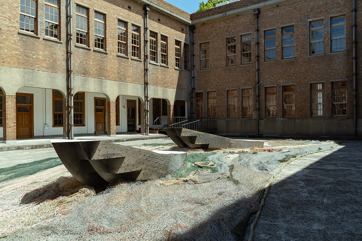 而在正濱舊漁會大樓內,藝術家賴彥勳攜手韓國音樂家東熙與研究者林佩儒,共同推出結合雕塑、音樂與影像的計劃型創作《海潮‧舟潮‧離》,向二戰後留在基隆的韓國人社區與離散文化致意。