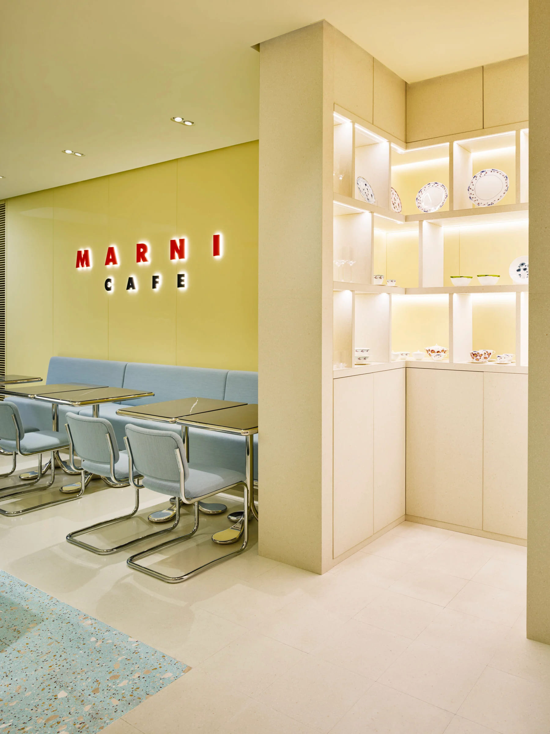 MARNI 全球首間咖啡館亮相東京:以粉彩調、青綠色 Marcel Breuer 經典椅等元素打造時髦空間