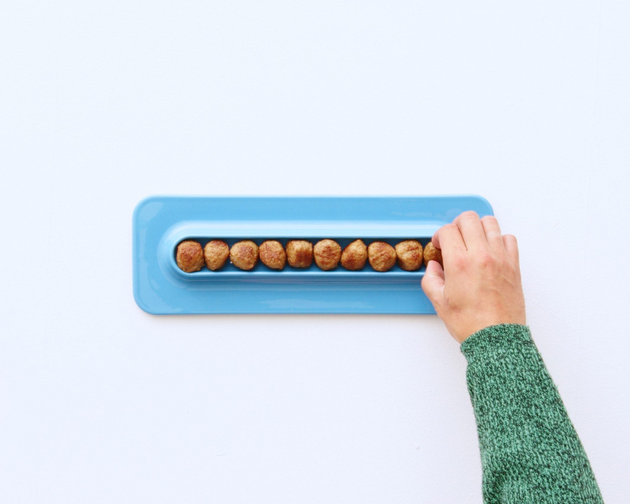 而且讓人會心一笑的是,今年適逢 IKEA 經典肉丸上市 40 週年,Westman 特別設計了一款長形餐盤,為每顆肉丸打造專屬位置。「對許多瑞典人來說,肉丸象徵聖誕節,也是 IKEA 不可或缺的一部分。」Westman 說。不過,不用太害怕這款新品功能性上的侷限,因為它不只可以裝肉丸,也可用於各式小點心,延伸日常餐桌的儀式感。