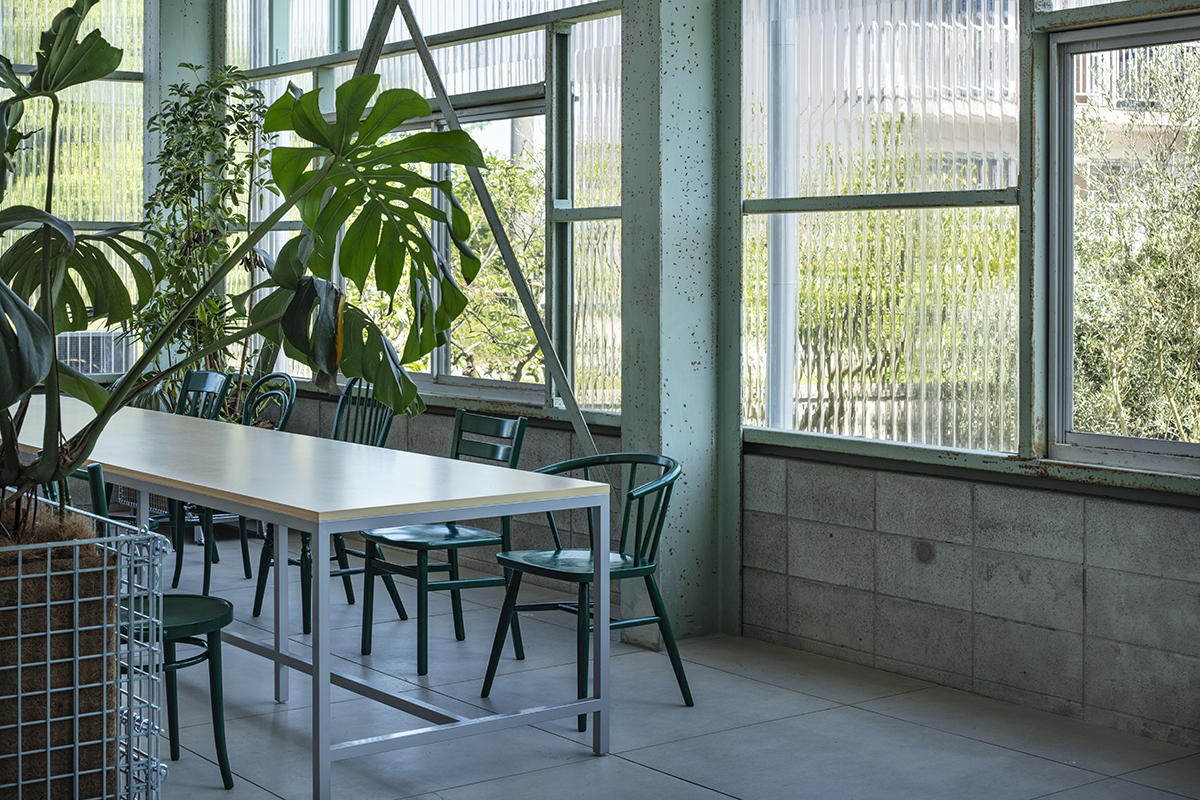 咖啡廳側的外牆改用透明度高的PC板。(Photo Credit:長谷川健太)