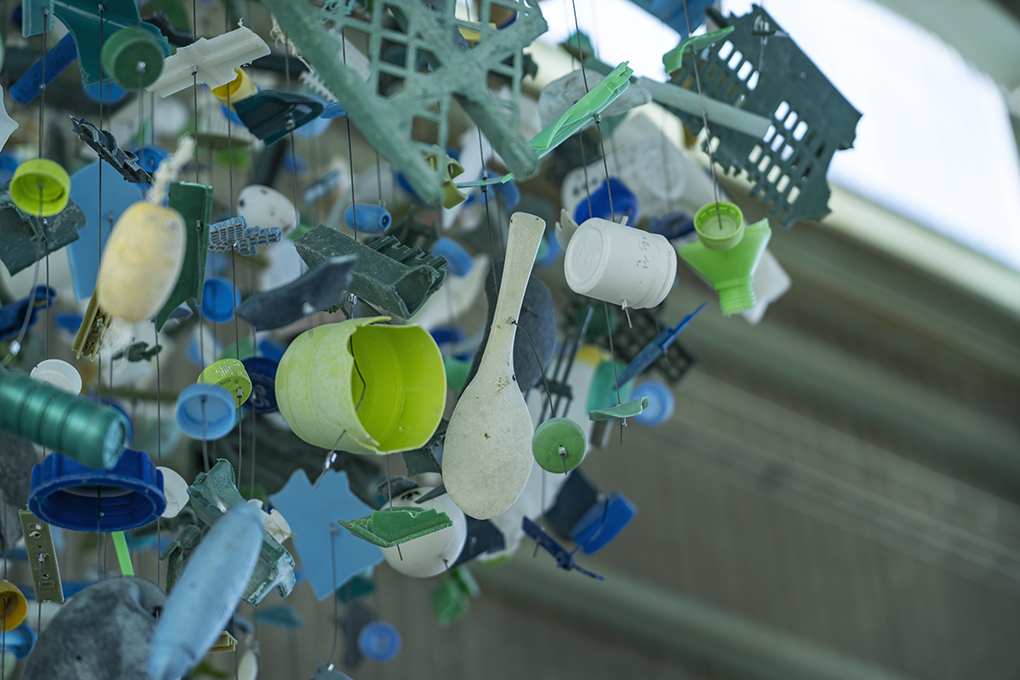 空間亮點的照明裝置以海洋廢棄物重組創造。(Photo Credit:長谷川健太)