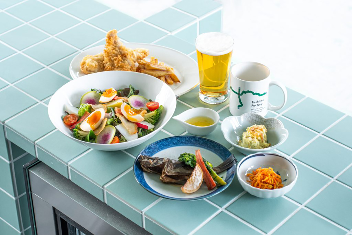 Teshima Factory 以實現「豐島自給率 80%」為目標,隨季節更迭提供使用島上新鮮食材製作的餐點,讓島民與訪客都能品嚐到在地風味。店內也供應著由釀酒廠生產的兩款精釀啤酒「Lull Beer」——其名意為「小歇、停留」,象徵島上的緩慢時光。無論是香氣明亮的 IPA,或是爽口俐落的皮爾森,喝下一口,都能從那舌尖上感受到豐島的魅力。
