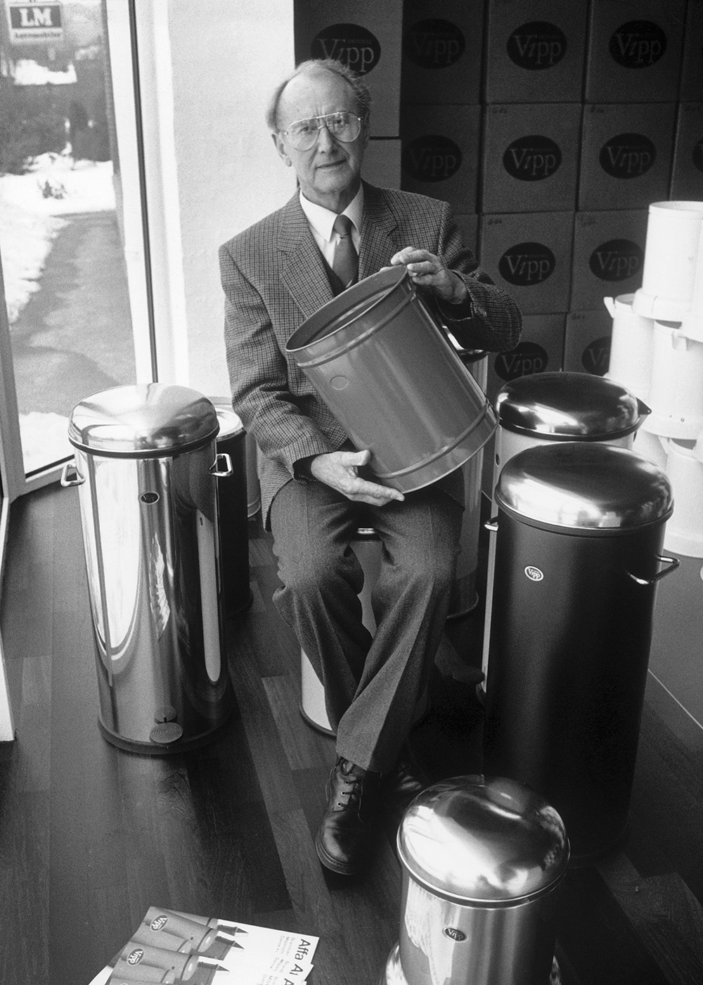 1939 年,Vipp 創辦人 Holger Nielsen 以鋼鐵金屬工藝起家,致力發明與打造日常生活不可或缺的耐用工具。Holger 為髮廊工作的妻子 Marie 打造全世界第一個腳踏式垃圾筒「Vipp Bin」,憑藉輕巧、堅固與實用性,迅速成為丹麥家庭與沙龍不可或缺的日常物件,並於 2009 年被紐約現代藝術館 MoMA 納入永久典藏。