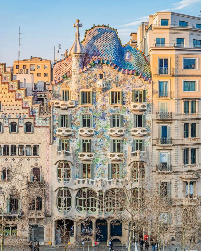 巴塞隆納地標、安東尼・高第於 1906 年設計的巴特羅之家(Casa Batlló),是現代主義建築的經典之作,也是聯合國教科文組織世界文化遺產。這棟建築以獨特的曲線外觀、彩色馬賽克磚與雕塑般的陽台聞名,被視為高第「自然主義」設計理念的具象表現:每一個細節都呼應自然界的形態,從龍背般的屋頂到水波狀的陽台欄杆,都充滿有機韻律與流動感。其建築修復工程在 2018 年啟動,歷時 7 年時間,終於在 2025 年正式完工。