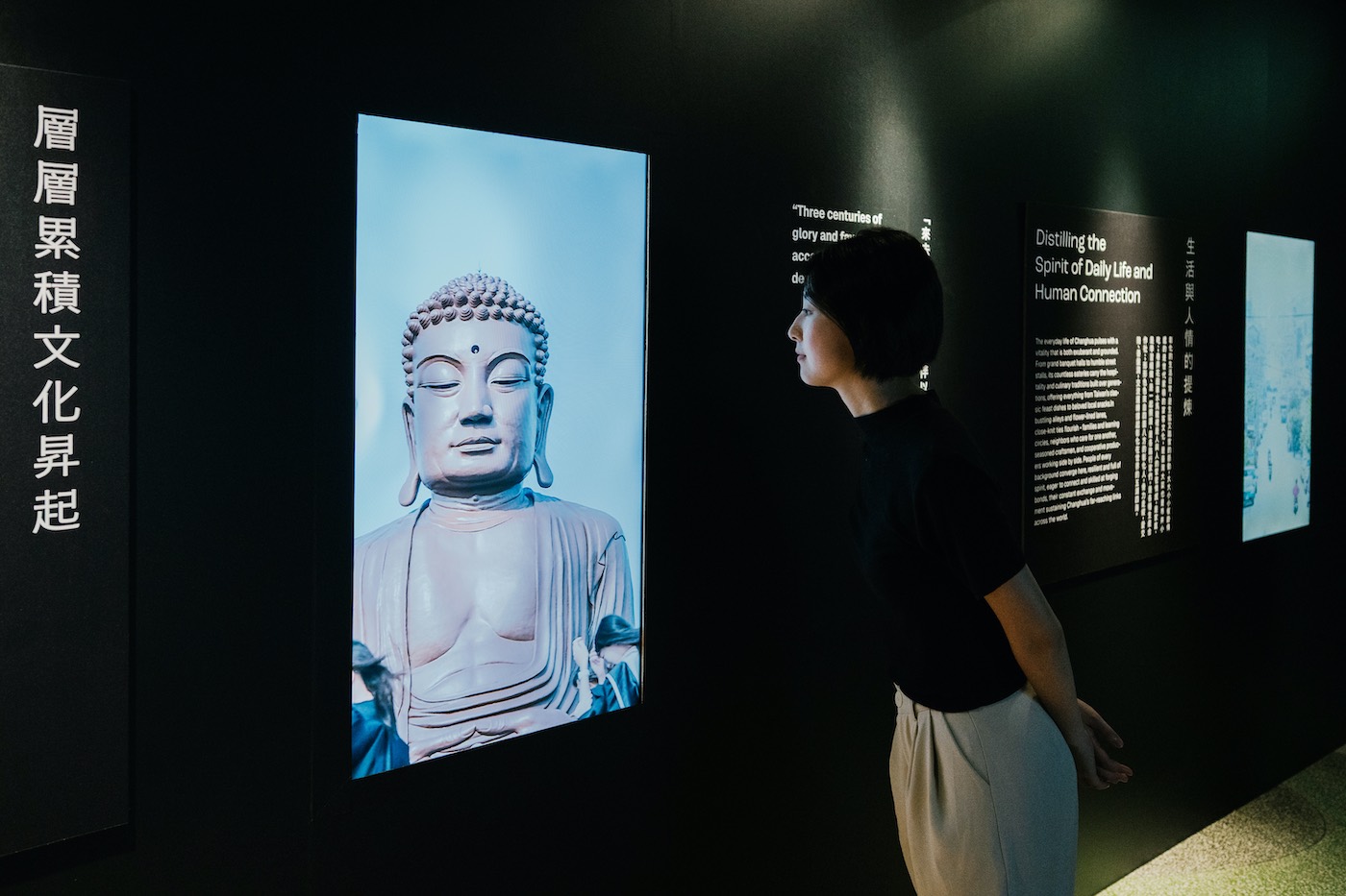 展區的開場如同一個核心中樞——「彰化行」的總行。這裡建構了一座名為「彰化 AI 智庫多維模型」的數位系統,保存城市的集體記憶,也預測未來的文化樣貌。科技與藝術在此交織,將資料轉化為故事,讓人窺見一座城市的心智正在被點亮。