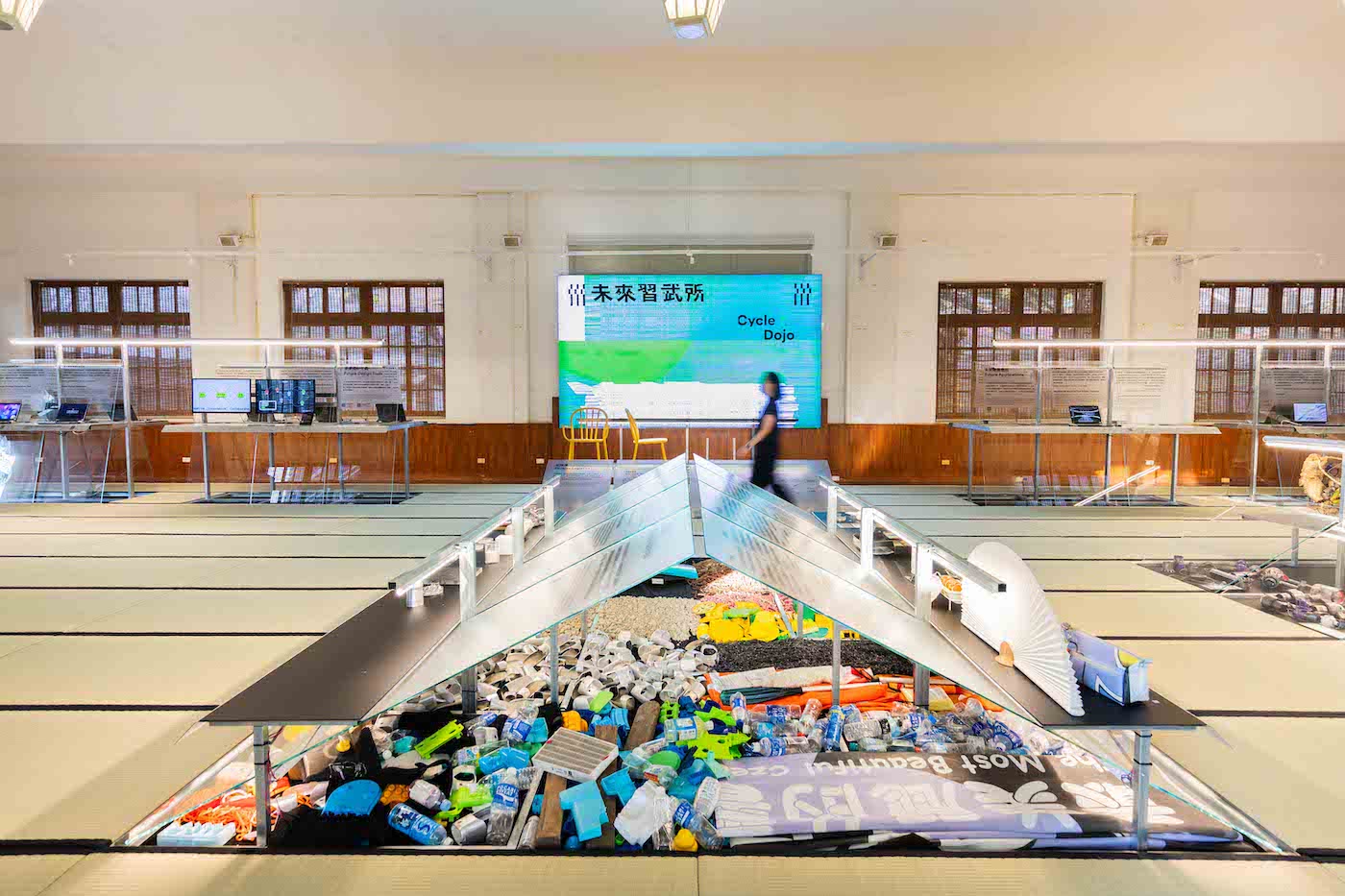 在古老的武德殿裡,「修煉」被賦予新的意義。 展覽以循環設計與科技應用為核心,探索人類如何在變動的環境中重新鍛鍊與世界相處的方式。材料的再思考、製程的革新與系統的反省,共同構築出一套面向未來的心法。這裡的「武」,是一種柔韌而堅定的生活哲學。