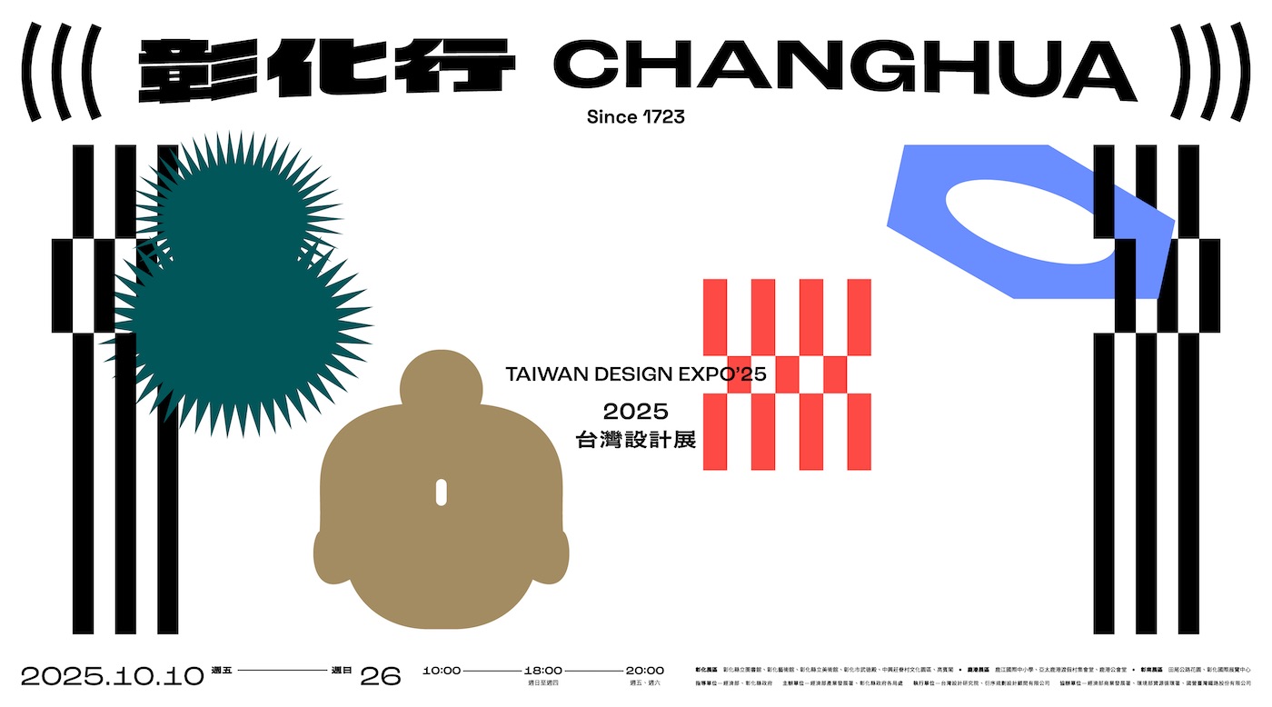 2025 台灣設計展首度來到彰化,將於 10 月 10 日至 10 月 26 日 盛大展開。以「彰化行(((CHANGHUA)))」為題,象徵這座城市從歷史的「行口」走向未來的「智庫」,在設計的引領下,透過「生產地景、流通運轉、多重產業」三大基石,營運一座象徵百年智慧的「彰化行」。