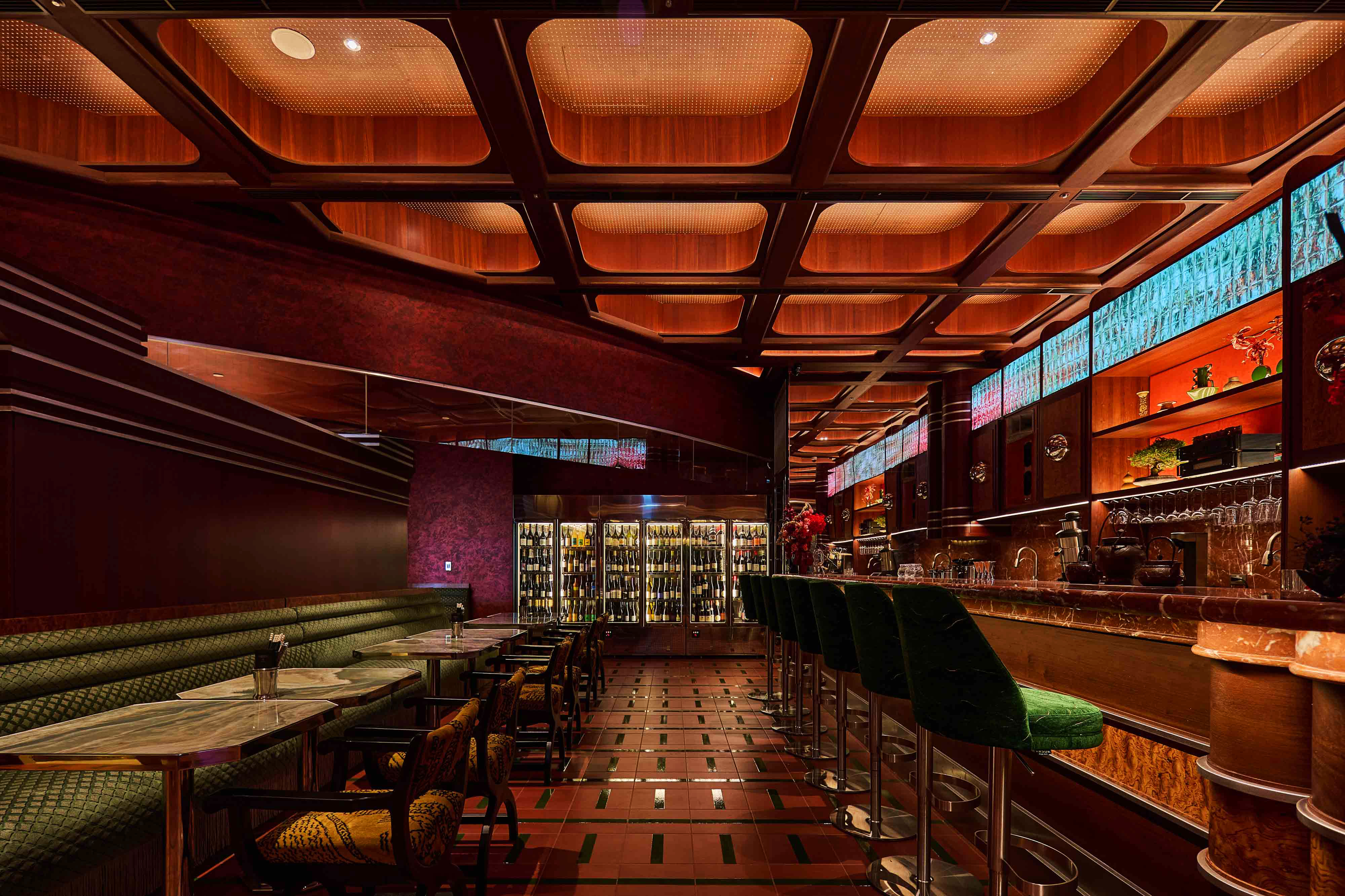 Wine Bar 收藏上百款世界紅白酒,而吧台特調:六款仙宮特製調酒,以經典配方融合台灣在地食材,調製全新味覺印象。「玉露山神」融合梨山烏龍與琴酒,氣泡間流動茶香與果韻;「赤羽鶴」則以屏東巧克力結合 Paper Plane 的結構,苦甜交疊。