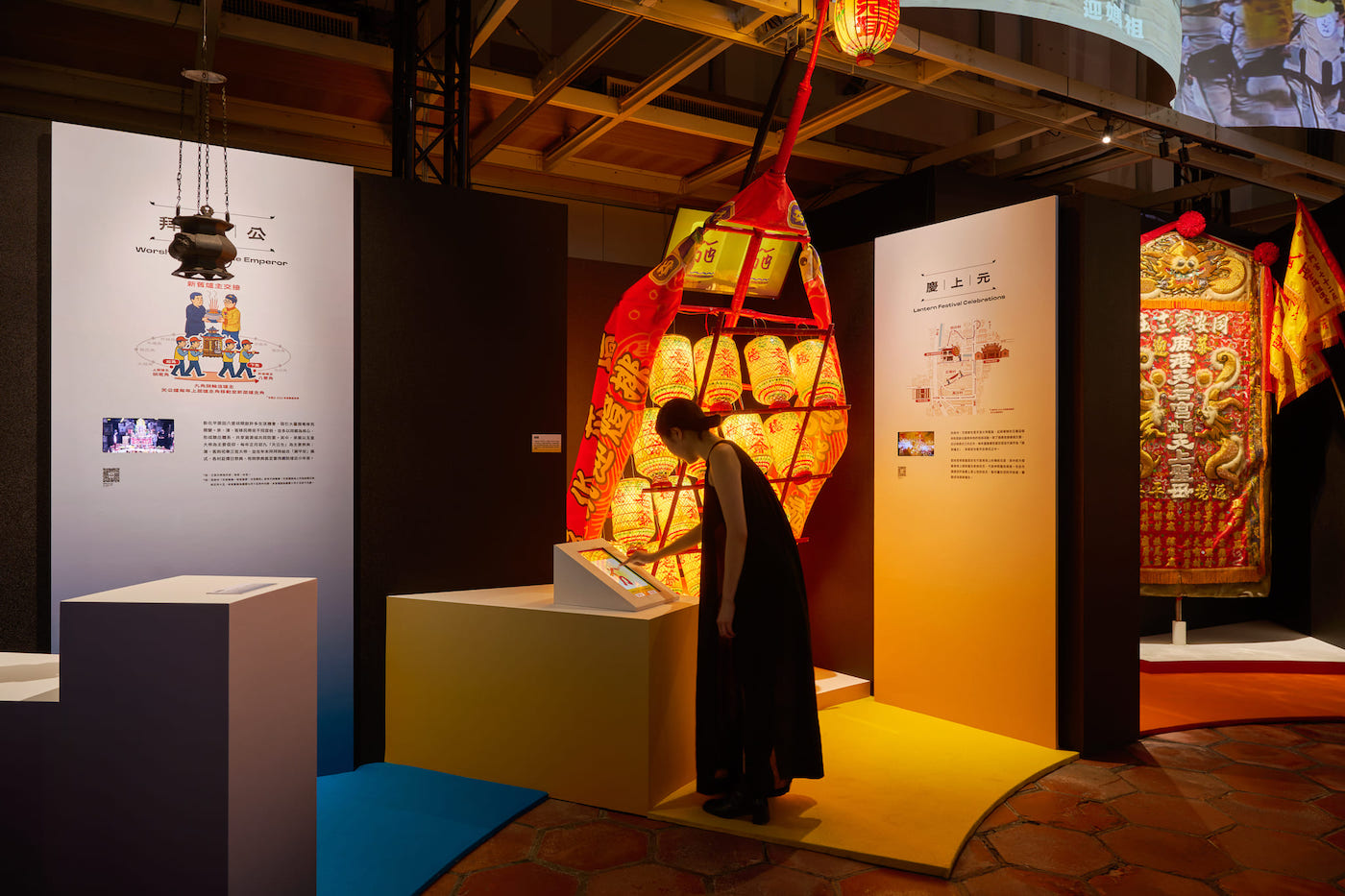 展區呈現家戶如何成為祈求平安最小而真切的單位,搭配超過25件供品及圖文資訊,彰顯備齊香火的過程蘊含對神明祈願的謹慎與講究。(照片提供:三分之三設計 3/3 TRIO DESIGN、攝影:白儀芳)