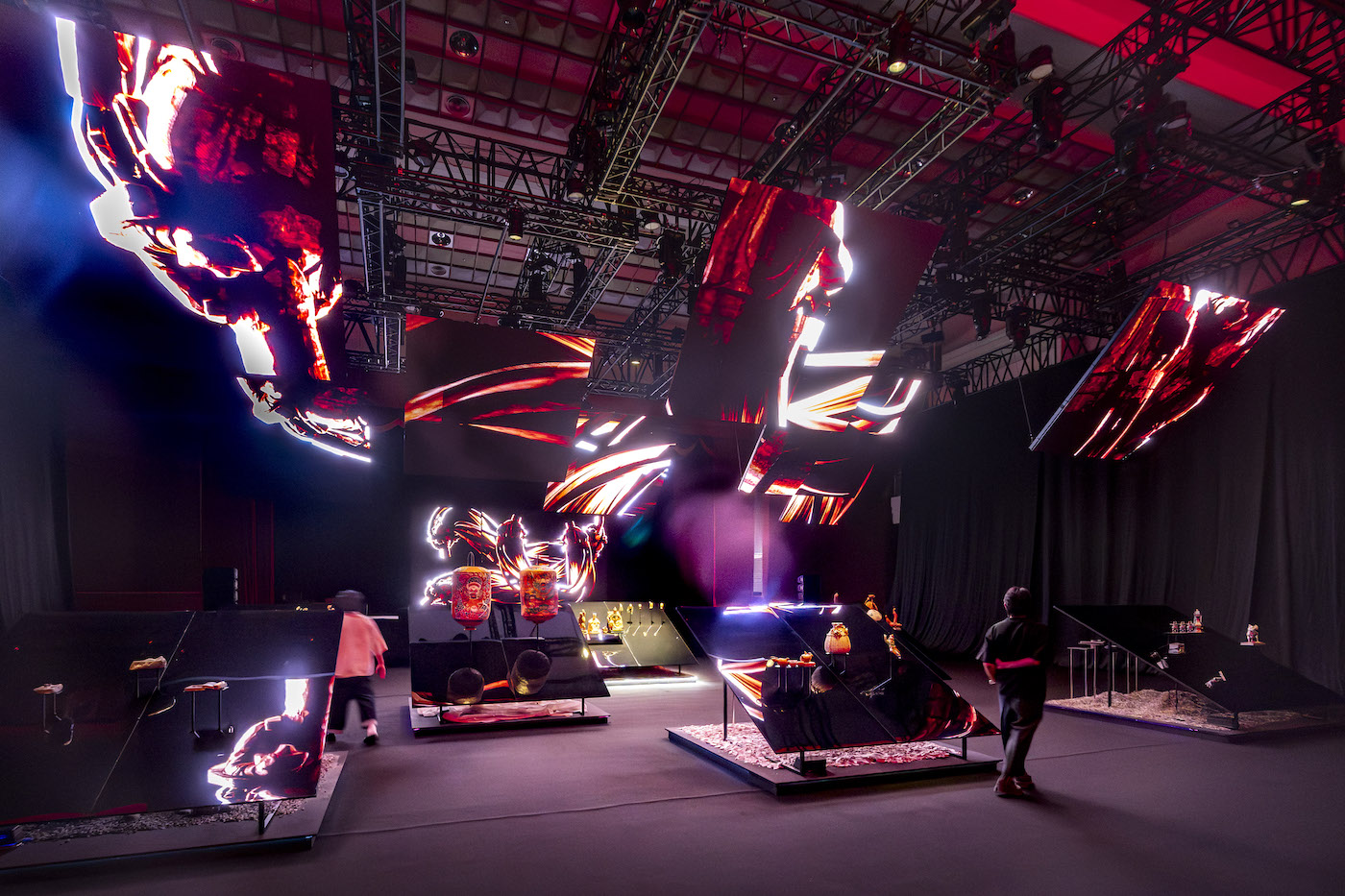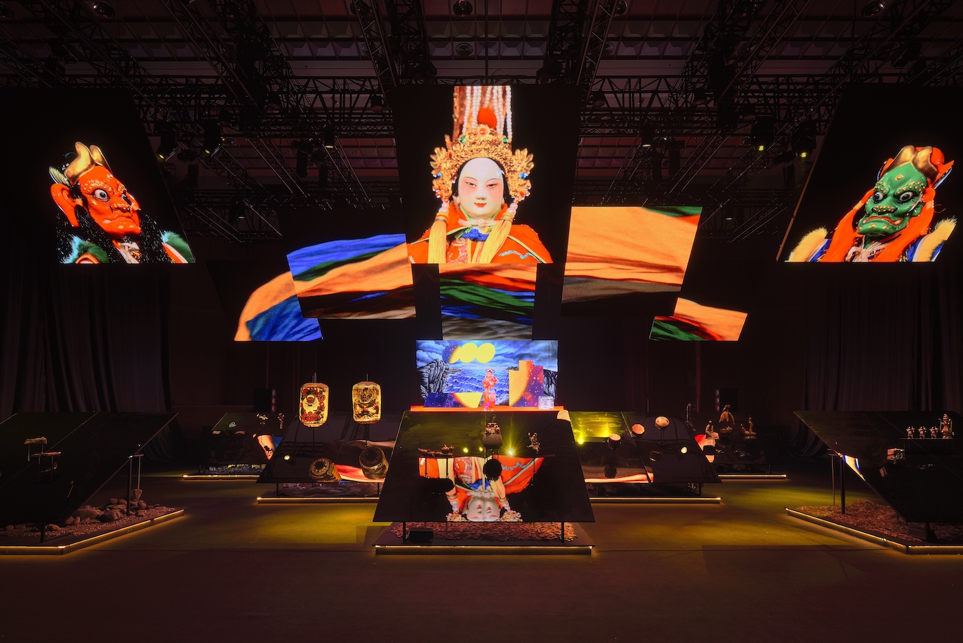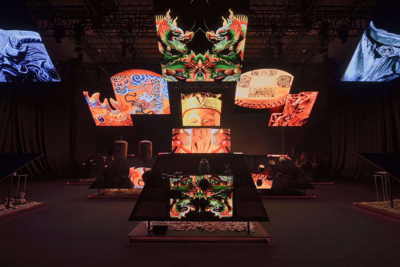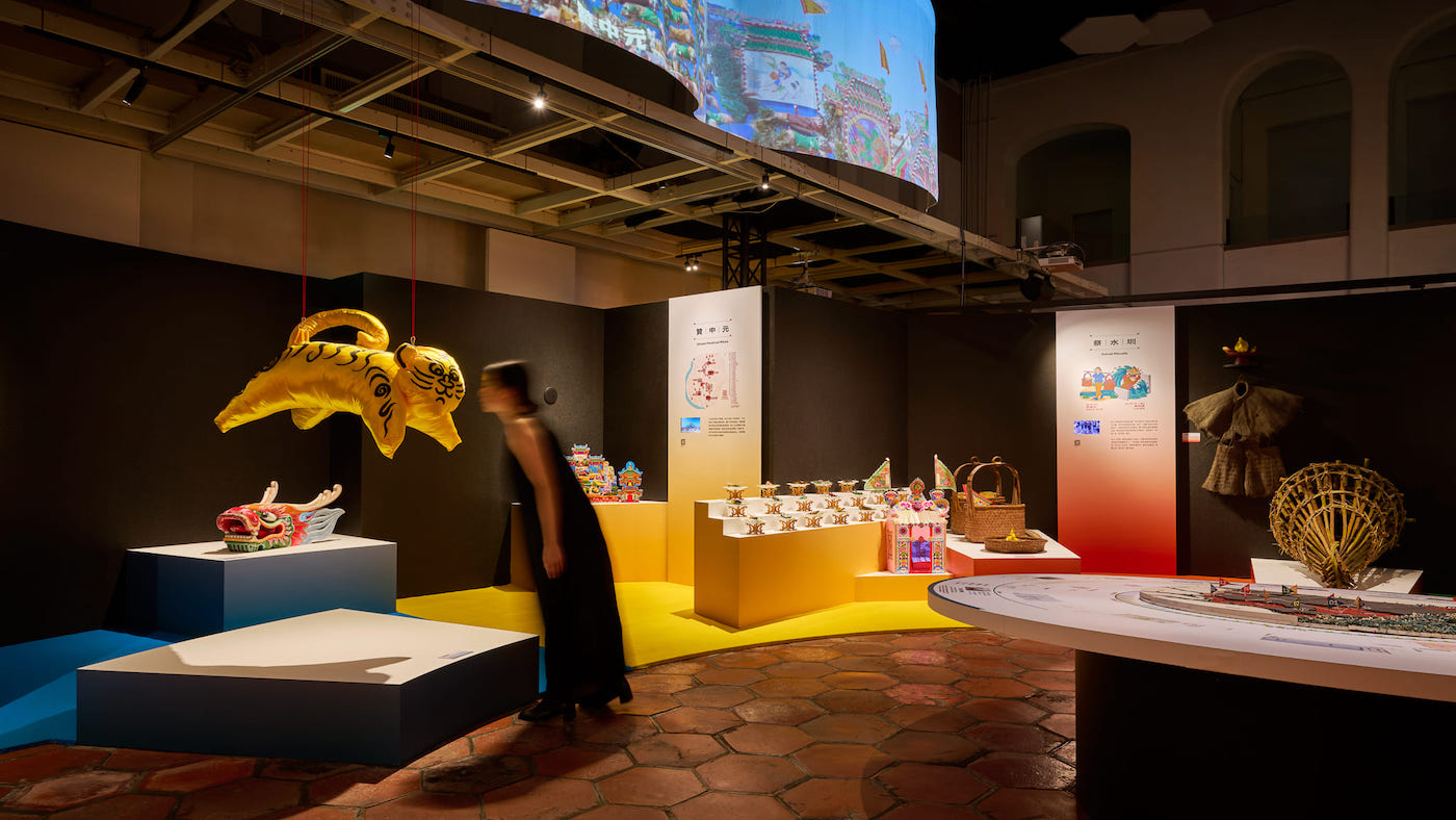 展覽以鹿港公會堂這座見證歷史的古蹟為舞台,將百年信仰文化轉化為沉浸式五感體驗。策展團隊以「迎平安廊道」開場, 觀者從光影步入節慶的流轉—— 八大歲時節慶鋪陳地方祈願的年輪:春祭媽祖、夏安五營、秋分普渡、冬至圓滿。