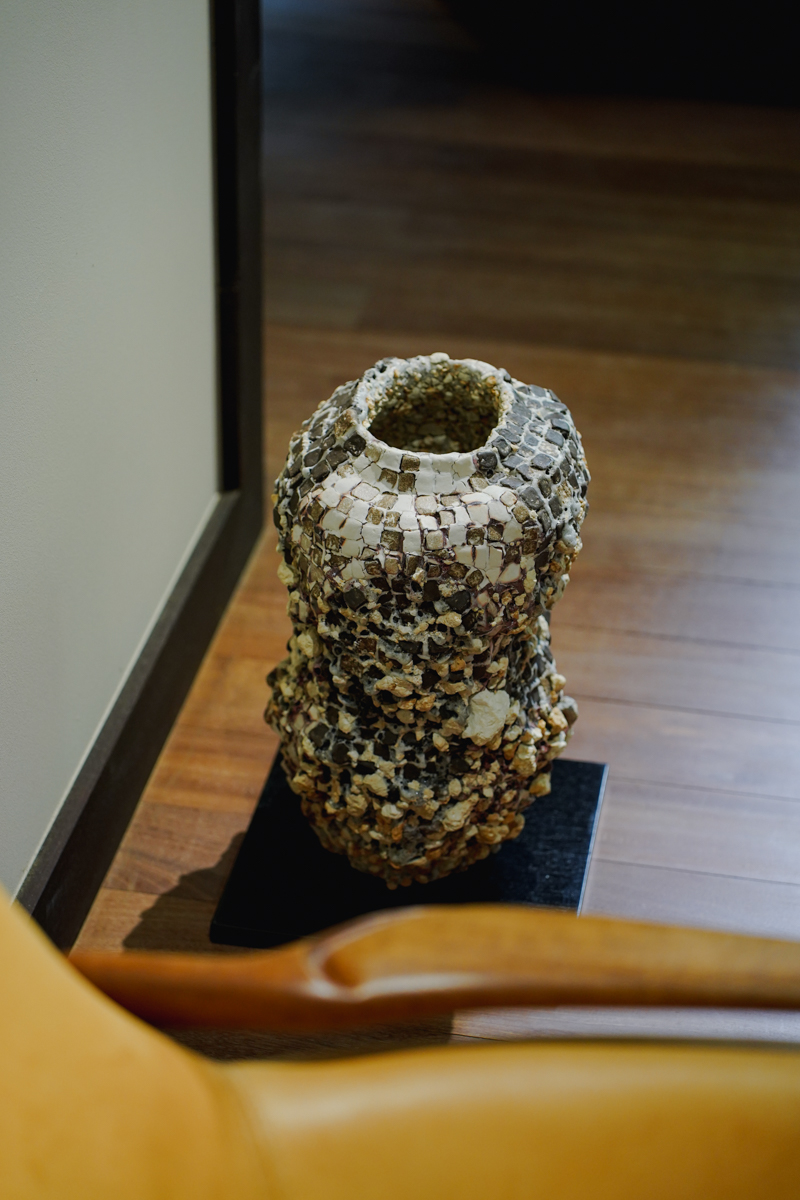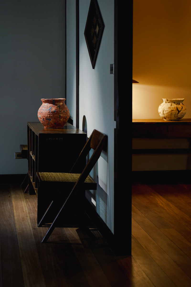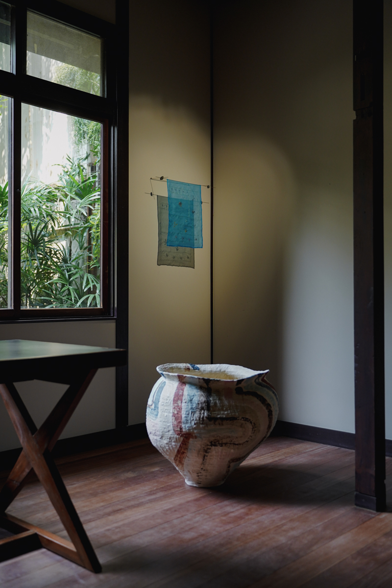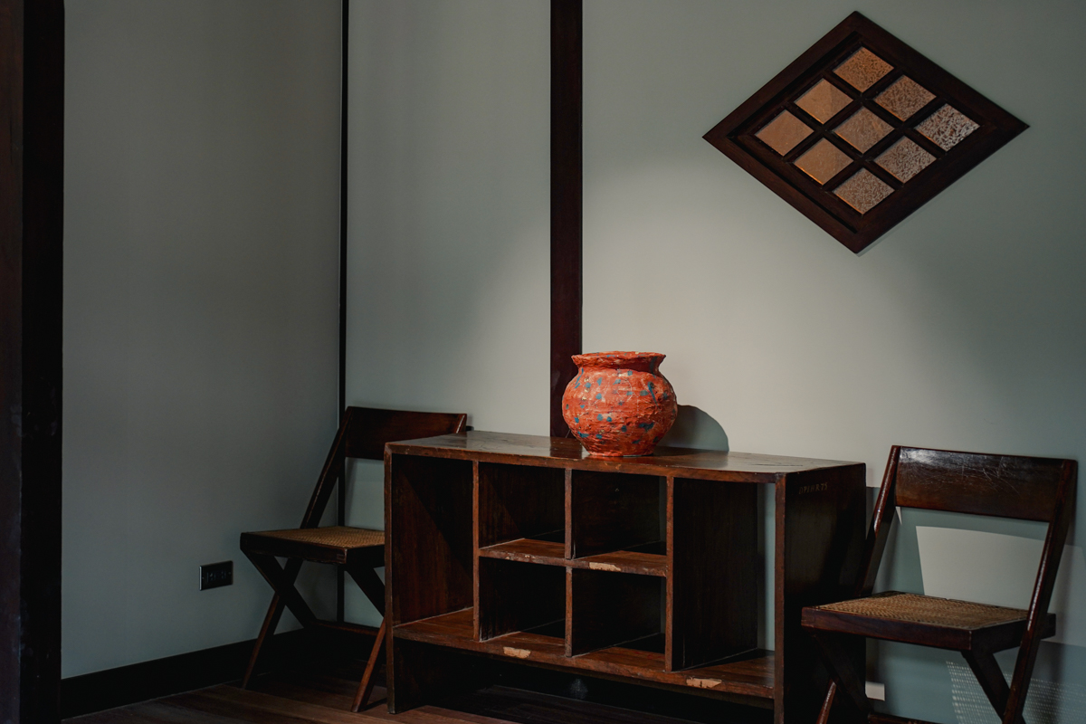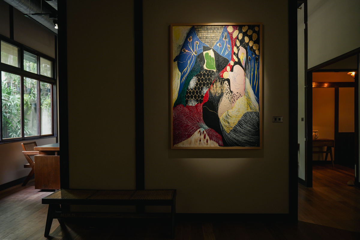 隨著不同品牌的進駐,「1035 Collab」不僅是一棟老屋的再生,更像是一座有機共生的聚落,讓歷史建築與創意實踐在日常中自然交織。此次群展由家具藝廊 GFG 協力佈置展場,選用 Pierre Jeanneret、Finn Juhl 等設計師的經典家具,讓空間與家具老件在材質與工藝之間展開對話。作品於其中不僅被觀看,更與時間與生活氣息共存,讓觀者在行走之間體會藝術融入日常的多重可能。
