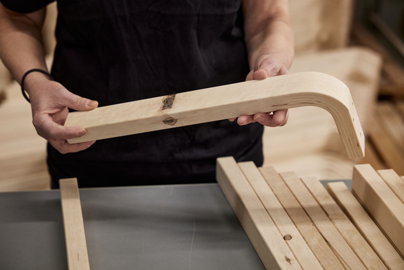 以往 Artek 對材料有嚴格篩選標準,只挑選紋理均勻、色澤一致的樺木。然而在氣候變遷與森林病蟲害影響下,樹木表面出現更多自然痕跡,在 Wild Birch 系列 中,Artek 保留這些結節與色差,以真實反映森林生命力與自然變化的印記。(Photo credit:Artek)