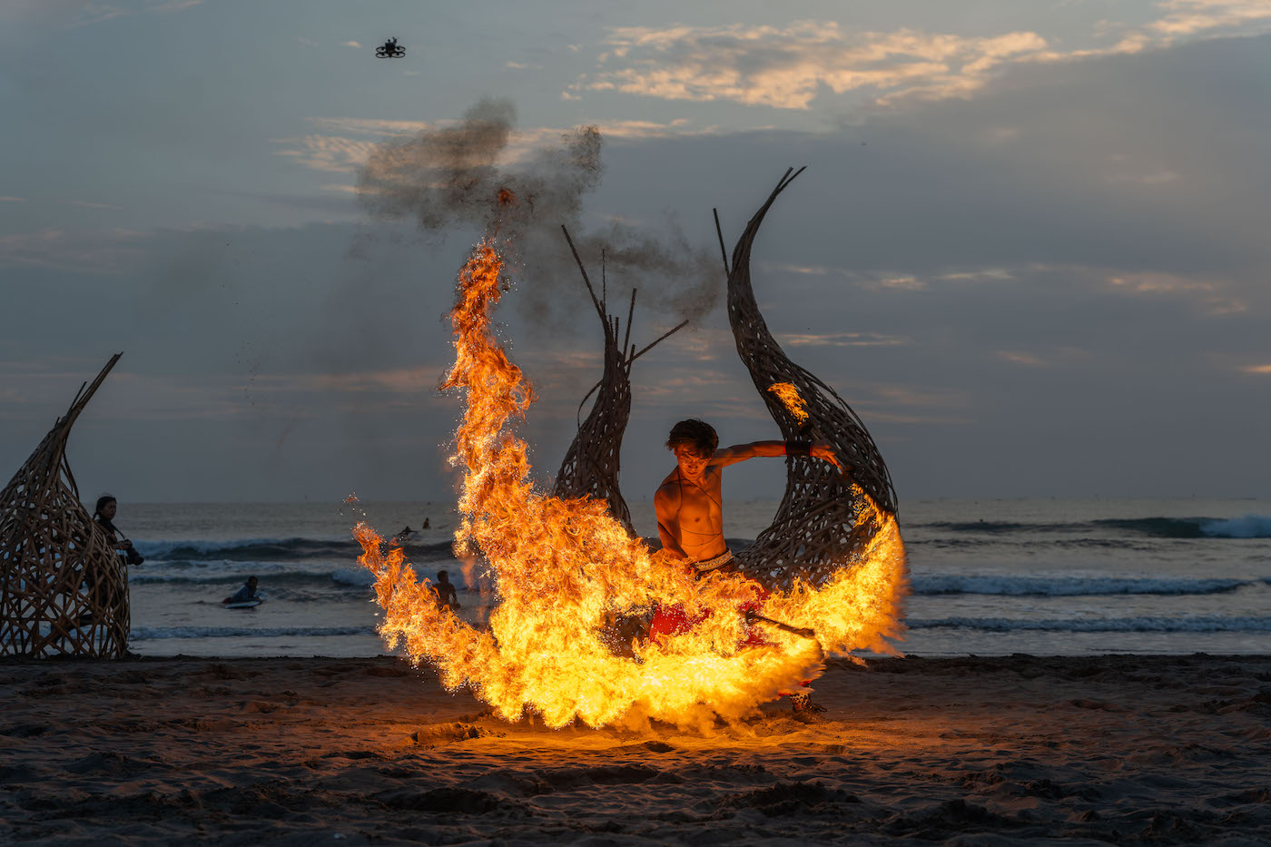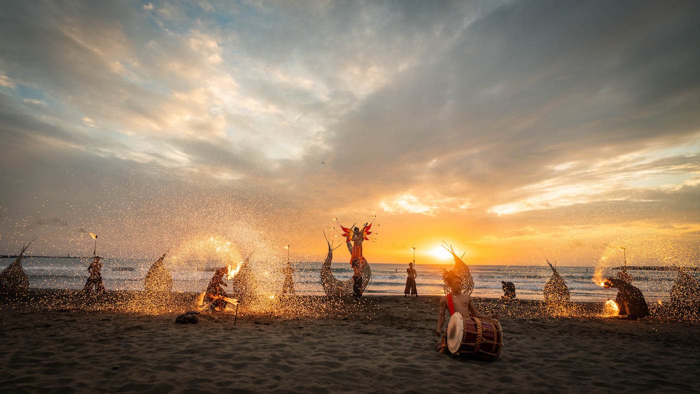 沉浸式海岸體驗:火舞、音樂與藝術裝置互動