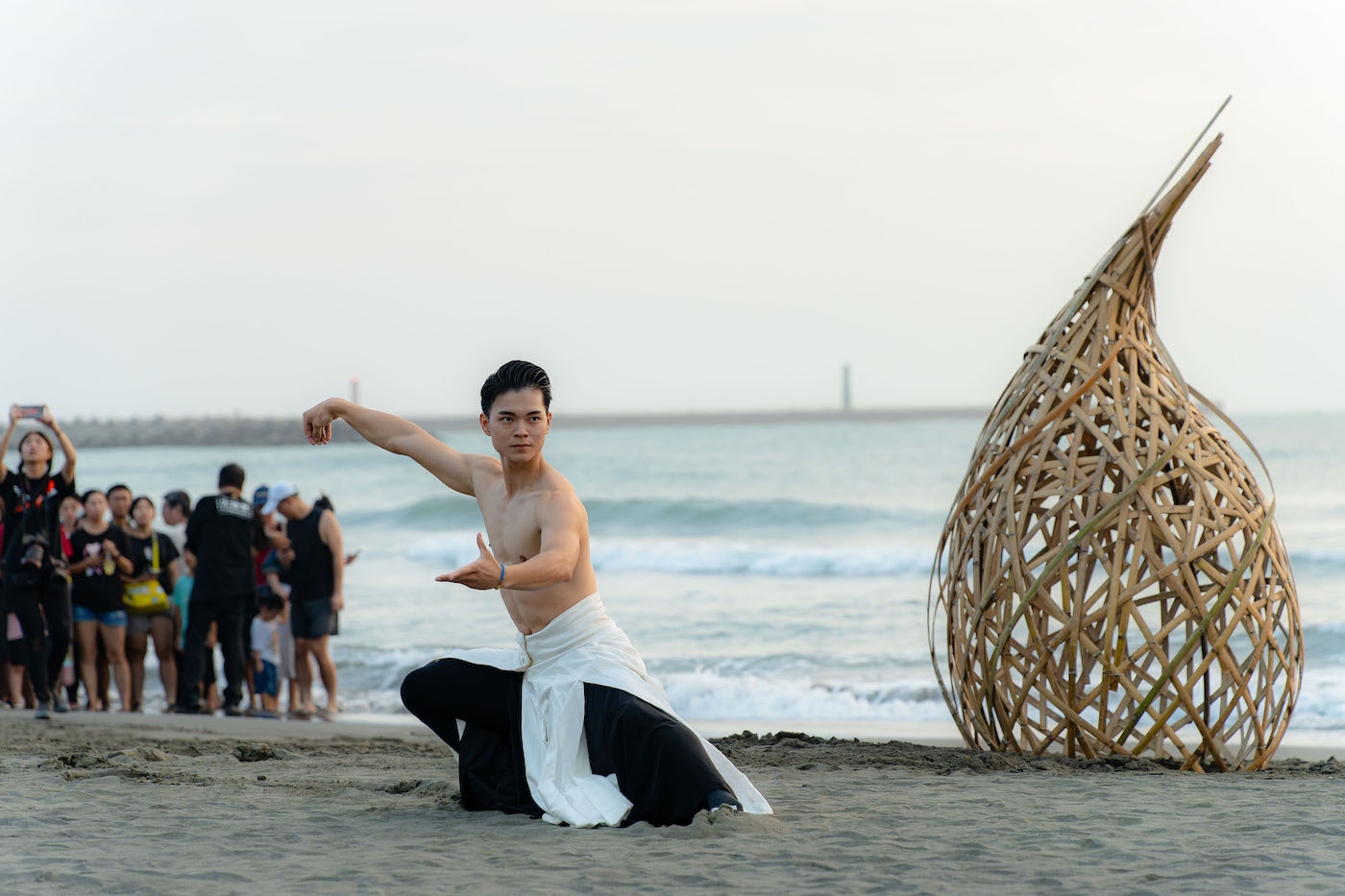 現場並展出多件結合火焰與自然的裝置藝術作品,包括禹禹藝術工作室《光與海的相遇》、李蕢至《鯤焰之光》和即將成真火舞團裝置創作劉育昇《ANTISPIN》,隨夕陽與火光變化映照出海岸與森林的不同意境。