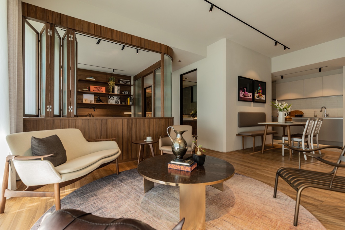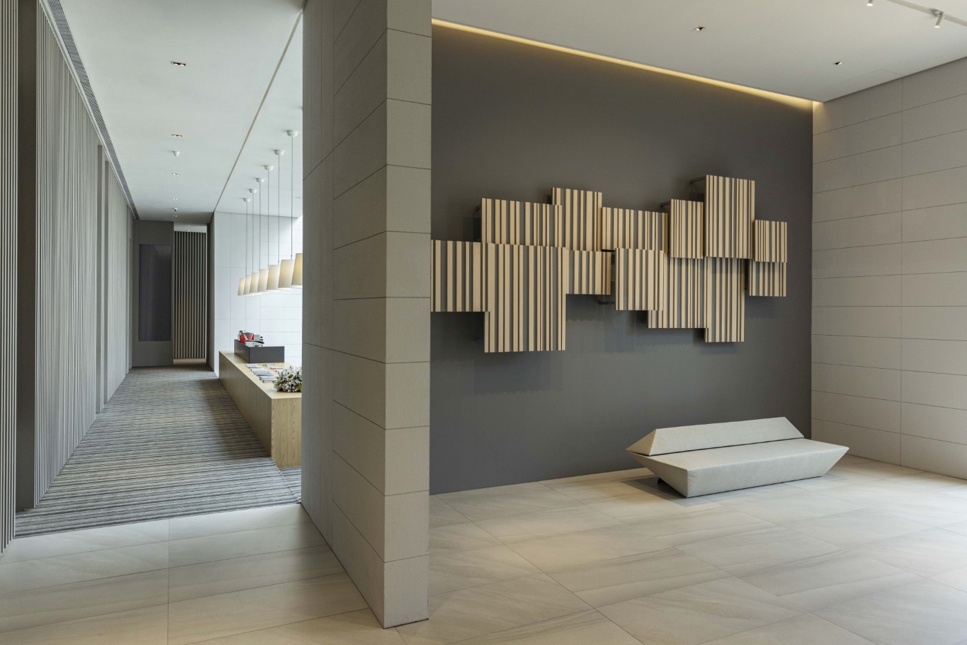 事實上,「街道美術館」三部曲的起點,始於隈研吾在義泰吾境的「植樹」念想。當年他初訪內湖便對此地一見鐘情,甚至想在這裡植一棵樹。義泰建設從此經驗出發,展開「回歸自然」的主題探索。於是,在義泰吾境,隈研吾透過建築退縮與層疊式花園設計,以綠帶串連住宅與街區。外觀則以木色調耐候鋁格柵構築出交錯肌理,不只遮蔽光線,也映出光影流轉。至於樣品空間上,義泰建設更邀請《GQ》前總編輯杜祖業策劃,與築內國際設計合作,以大地色調與天然材質勾勒出「鬆活」的居家氛圍,讓人進到室內時,彷彿從繁忙都市生活轉場,回到內在寧靜宇宙。