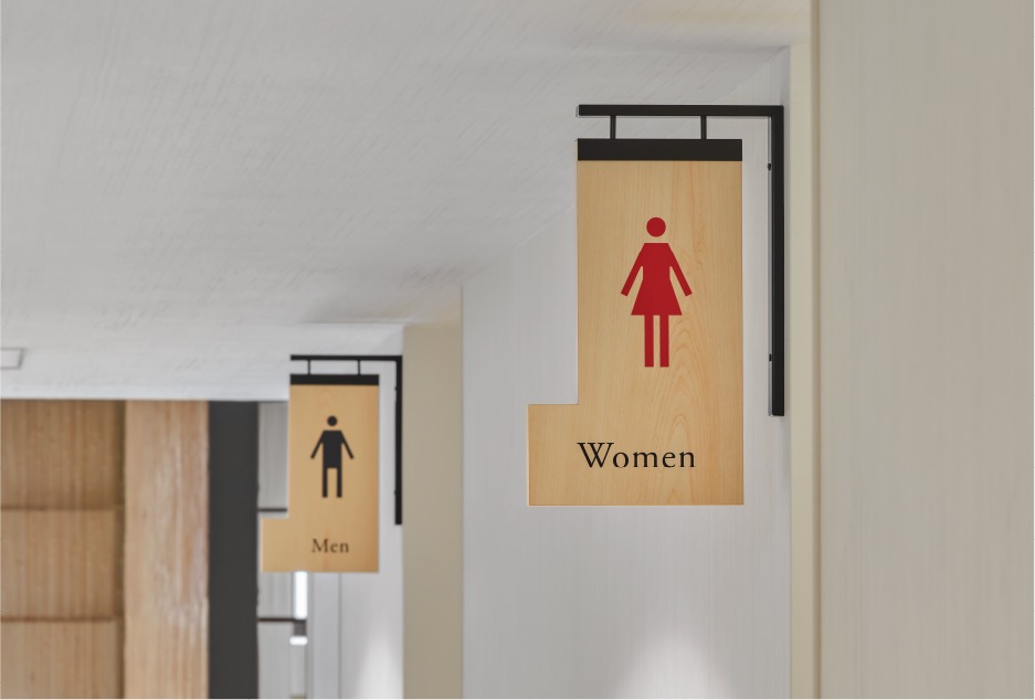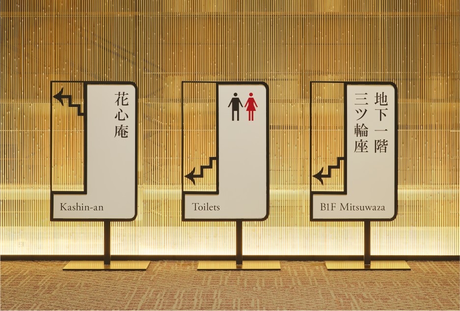(Photo Credit:Nippon Design Center)館內的指標設計由原研哉主導,L 字型的指標巧妙結合日文縱書與英文橫書,即使材質有所不同,也保持風格統一。不論是在地人或是遊客都能在欣賞傳統藝術的同時,順暢找到各個空間,感受細膩設計帶來的舒適流暢體驗。