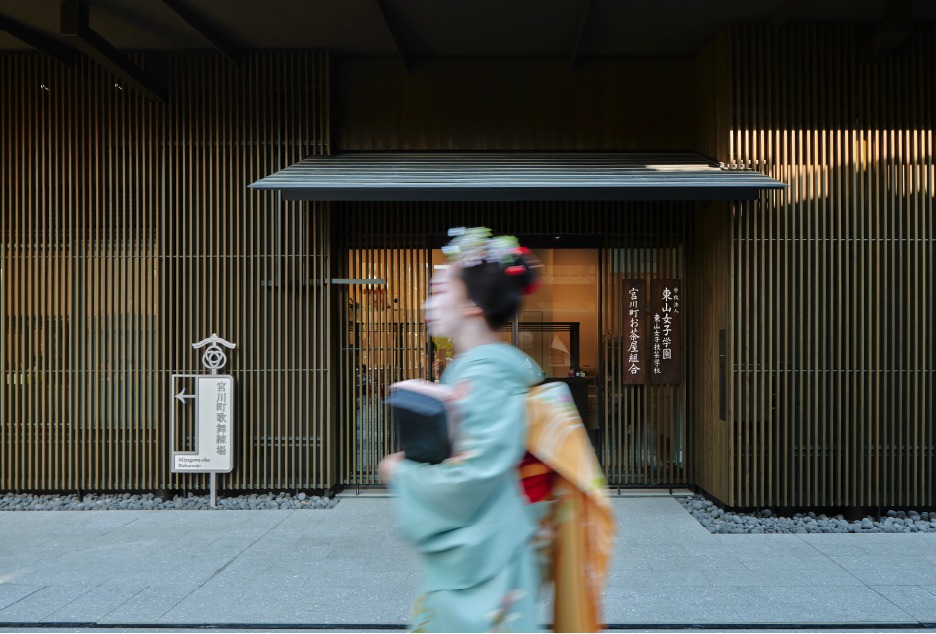 (Photo Credit:Nippon Design Center)舊的宮川町歌舞練場建於 1916 年,長期作為春季「京おどり」公演及日常練習場所。1970 年改建後,隨著建築老化與耐震問題日益明顯,2022 年開始新建工程,終於在今年正式落成。